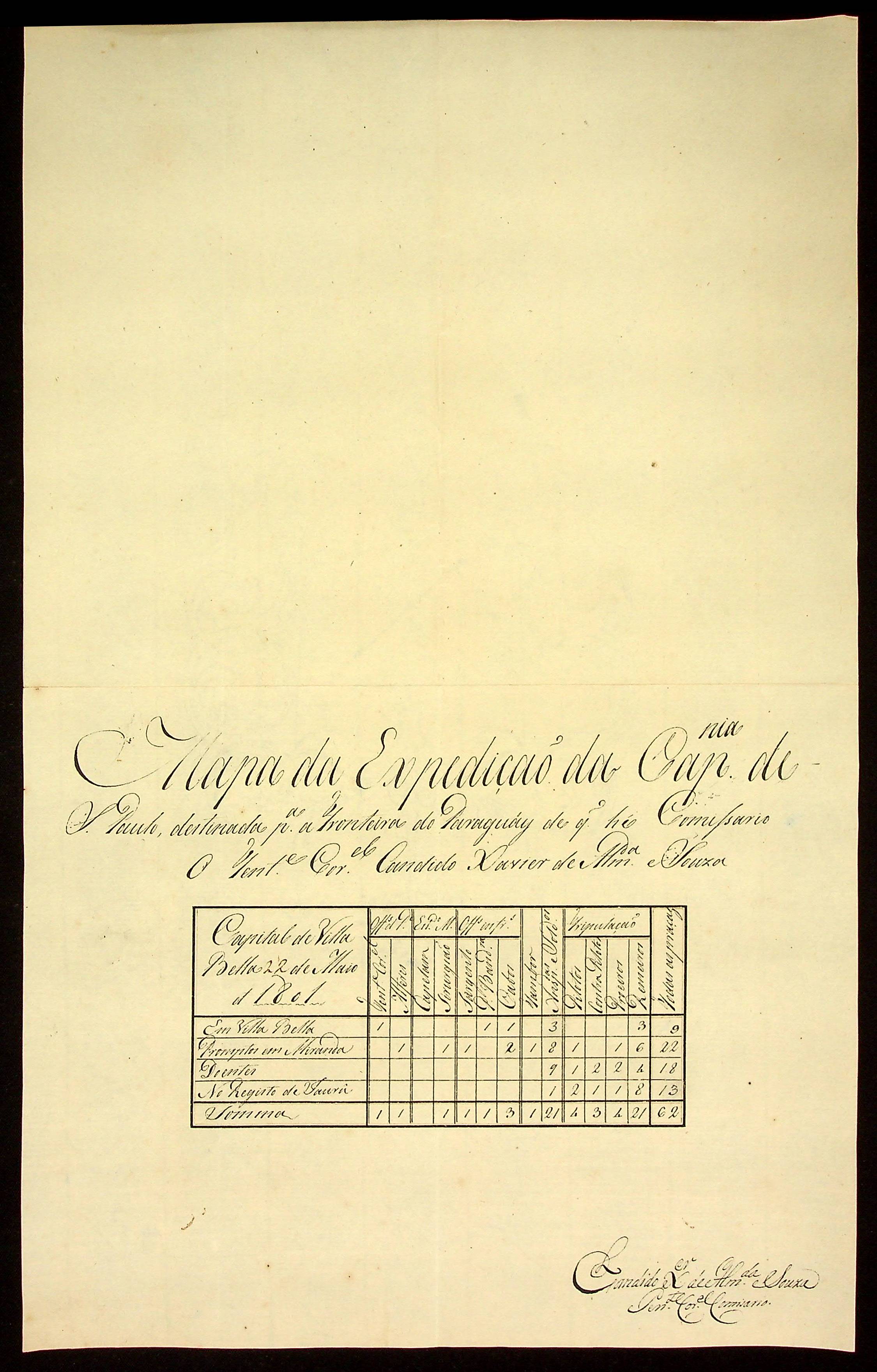 MAPA da expedição da Capitania de São Paulo destinada para a fronteira do Paraguai de que é comissário o Tenente Coronel Cândido Xavier de Almeida e Souza.