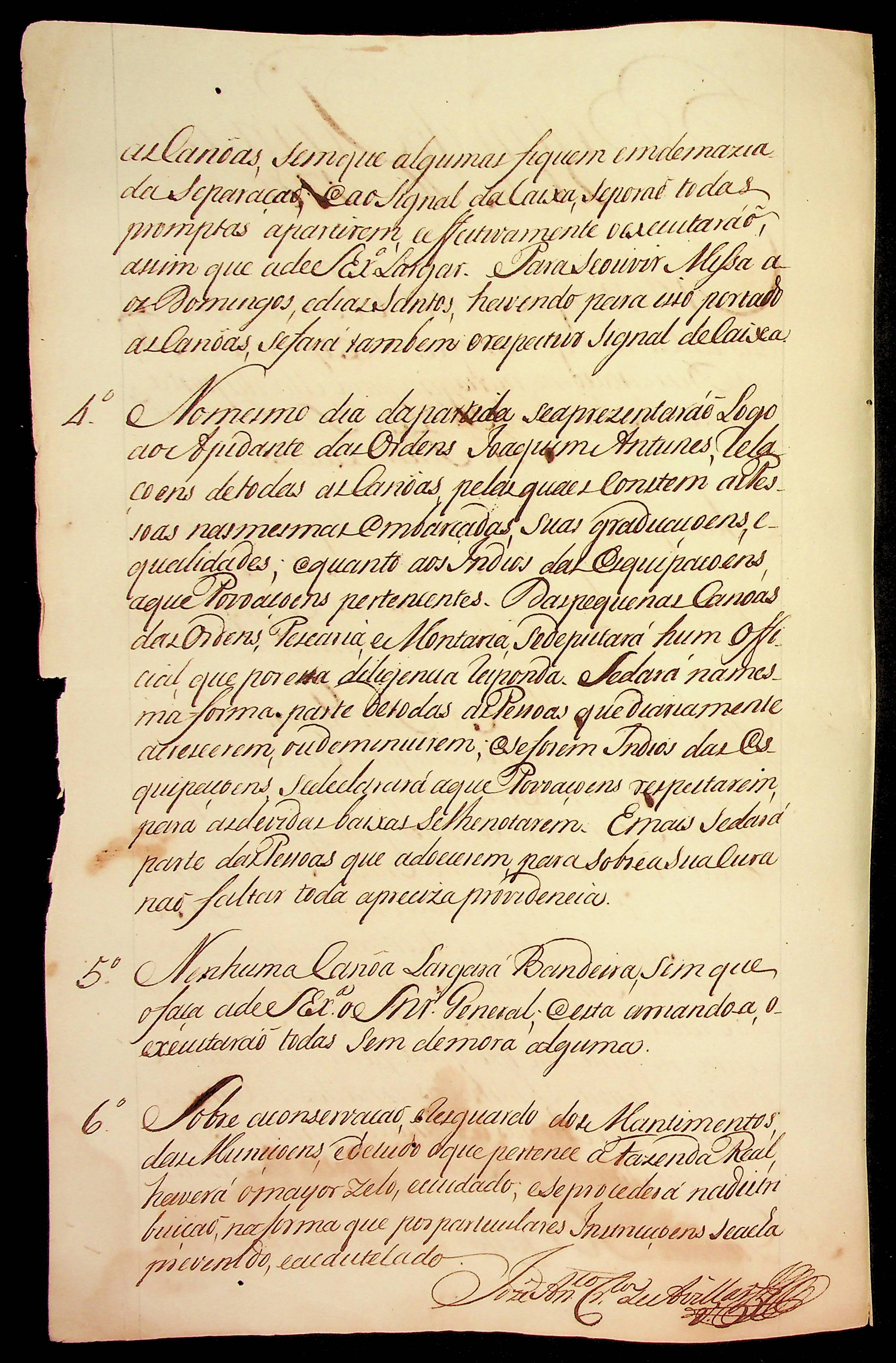 ORDEM do Senhor Capitão General João Pereira Caldas solicitando que se observe as canoas que compõem a expedição das Reais Demarcações, na viagem para ela disposta.