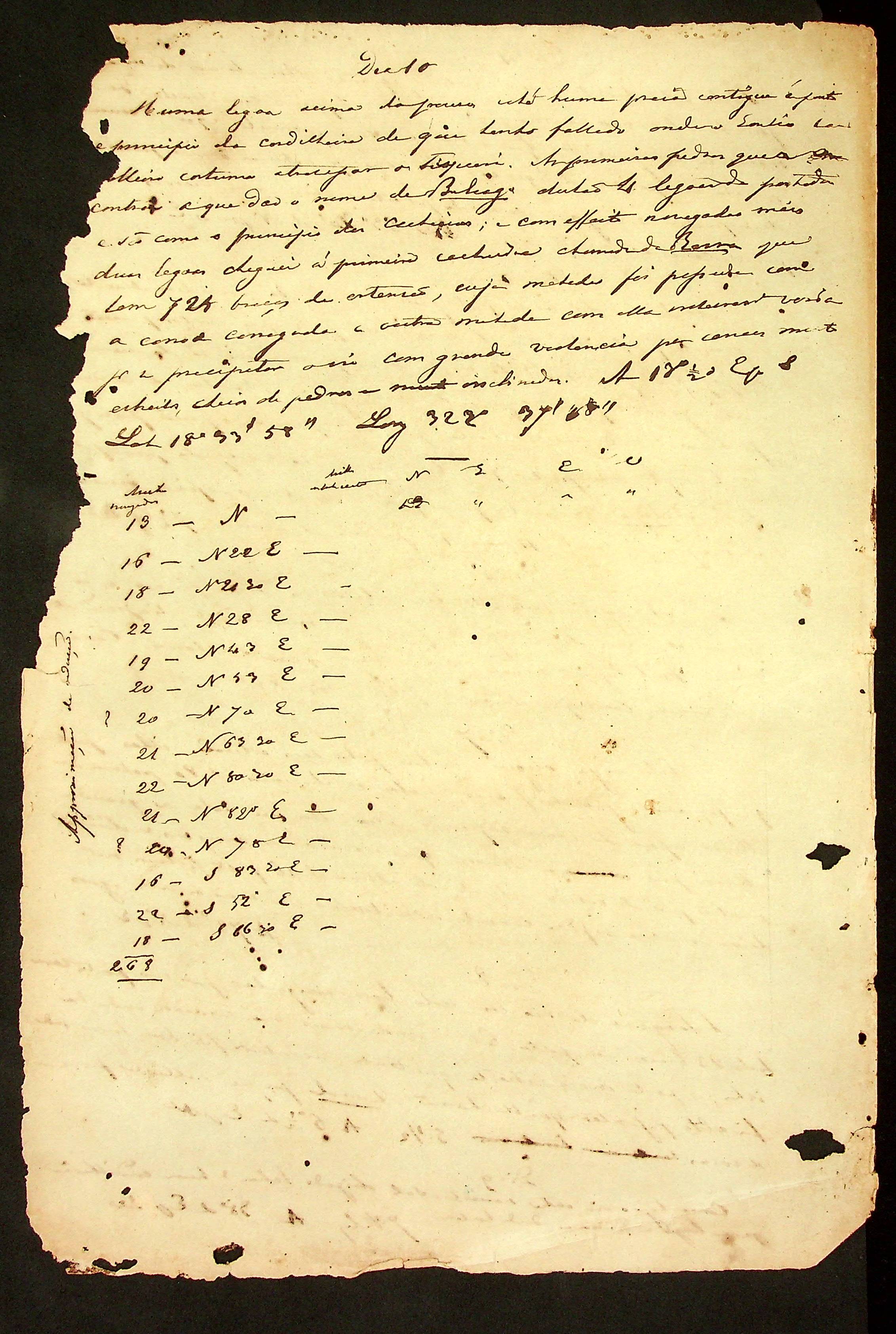 RELATÓRIO (resumo) do diário de reconhecimento do Rio Taguari feito pelo Dr. Francisco José de Lacerda e Almeida.