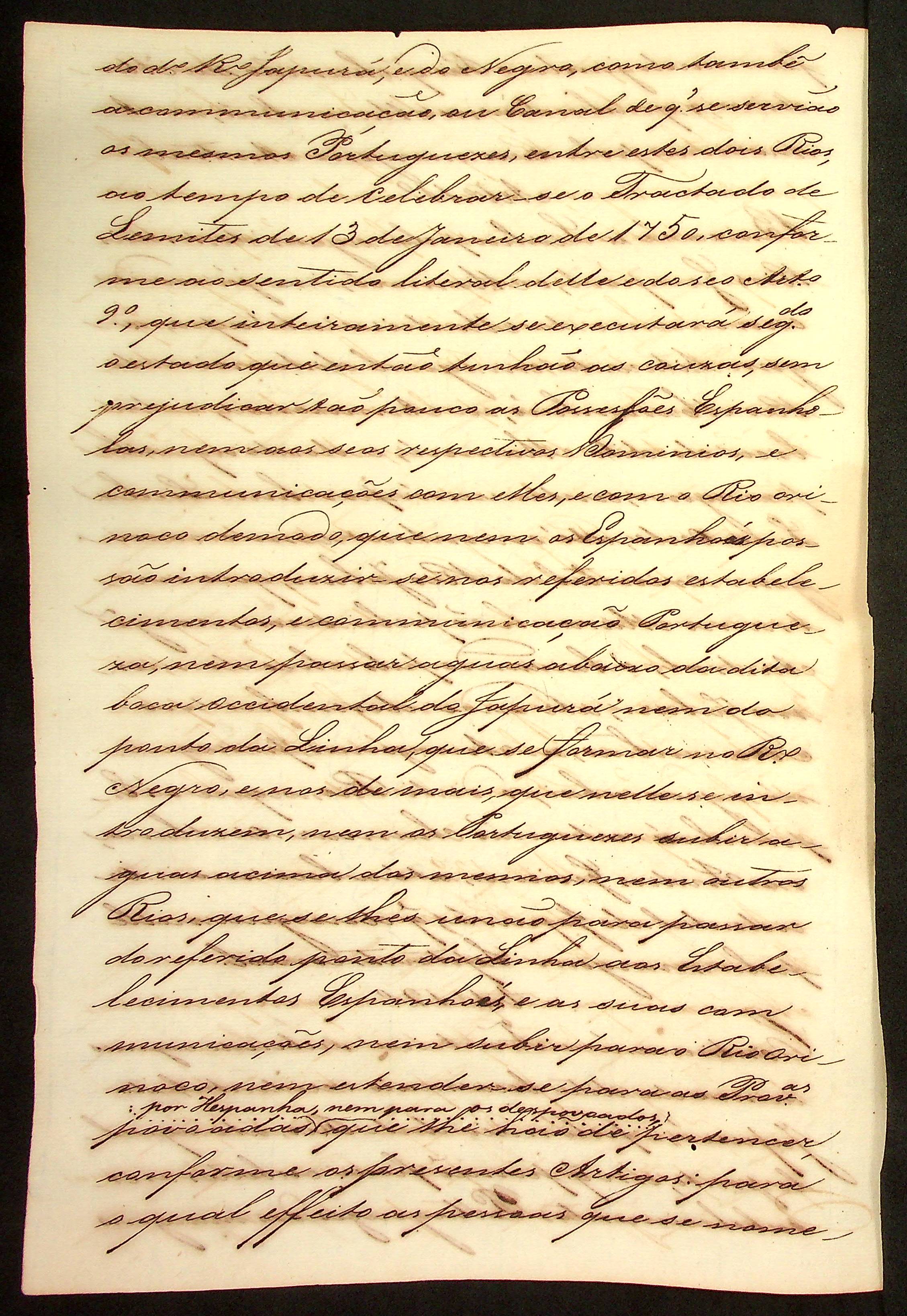 TRATADO (cópia) do Segundo tratado preliminar de Limites celebrado em Santo Idelfonso, em 01 de outubro de 1777 de que fez menção a carta da Secretaria de Estado antecedente.