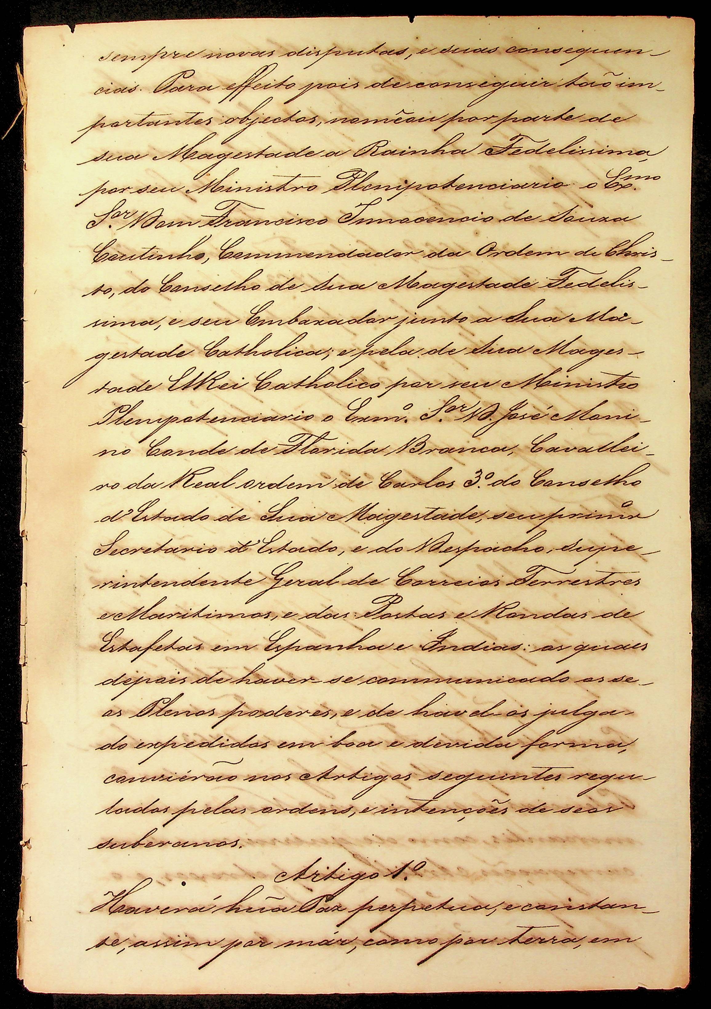 TRATADO (cópia) do Segundo tratado preliminar de Limites celebrado em Santo Idelfonso, em 01 de outubro de 1777 de que fez menção a carta da Secretaria de Estado antecedente.