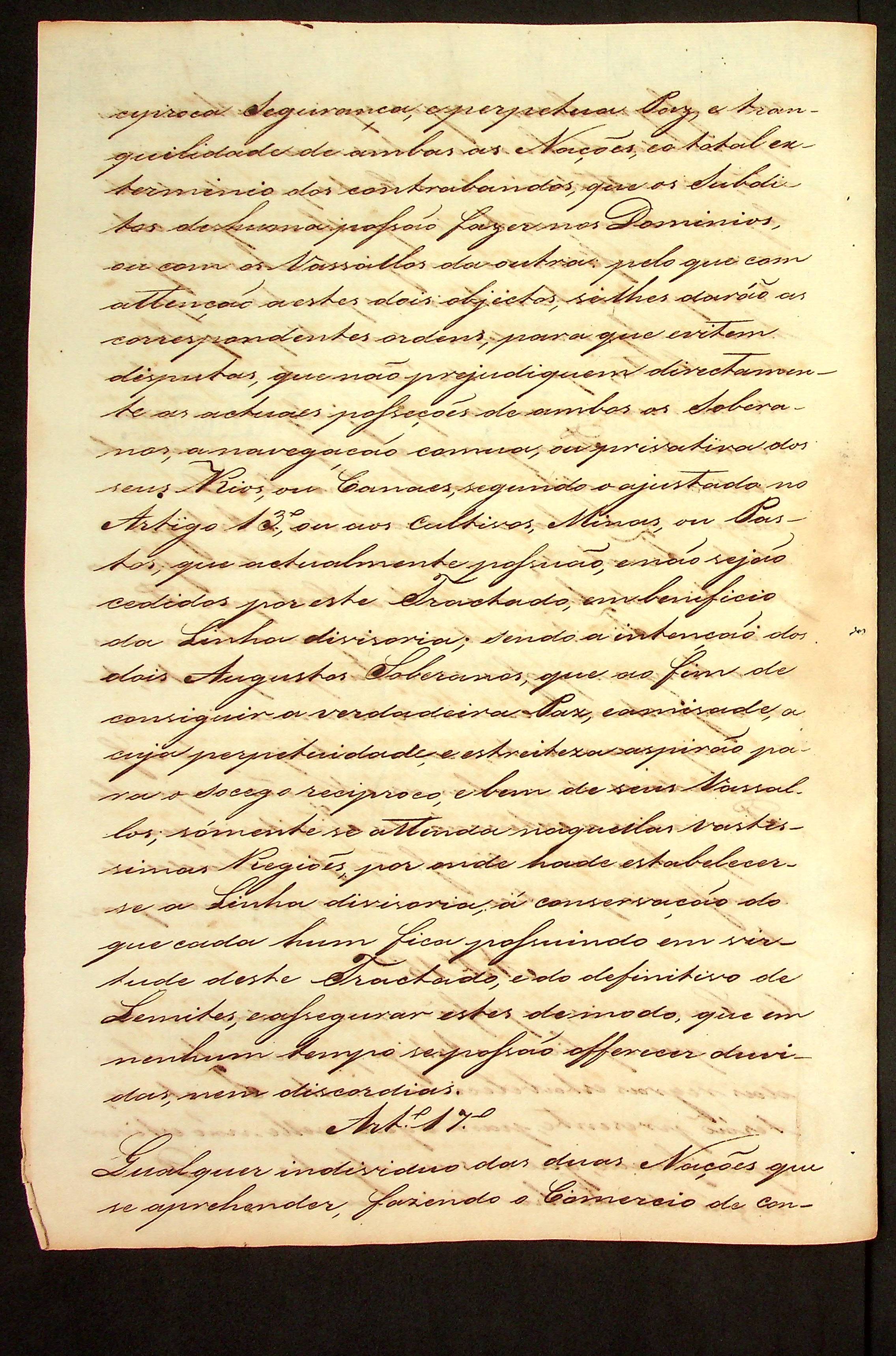 TRATADO (cópia) do Segundo tratado preliminar de Limites celebrado em Santo Idelfonso, em 01 de outubro de 1777 de que fez menção a carta da Secretaria de Estado antecedente.