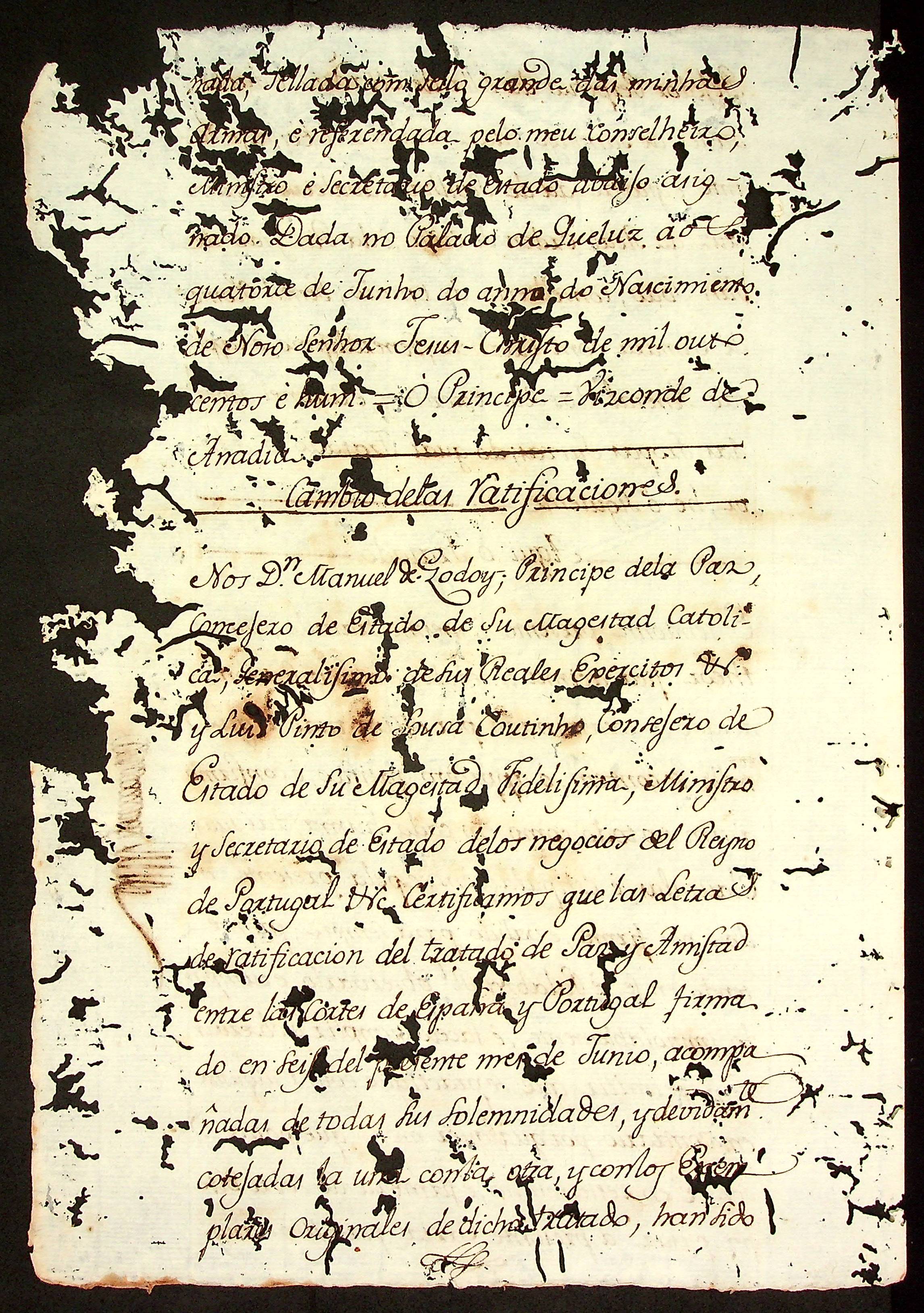 TRATADO assinado entre o Rei da Espanha D. Carlos IV e o Príncipe Regente de Portugal D. João.
