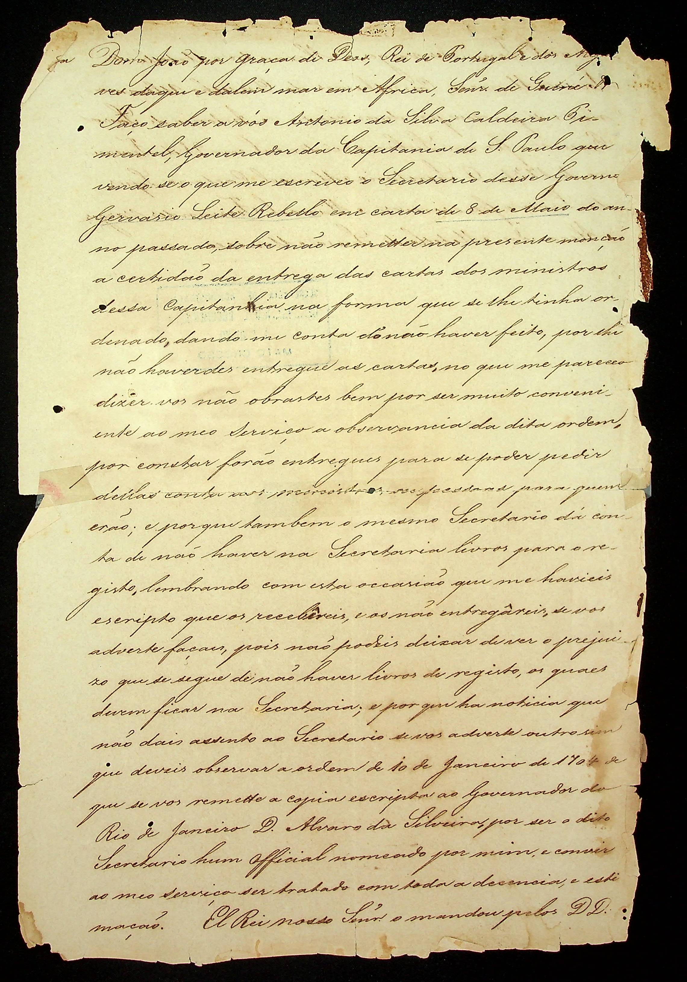CARTA RÉGIA do Rei de Portugal Dom João, enviada ao Governador e Capitão-General de São Paulo Antônio da Silva Caldeira Pimentel.