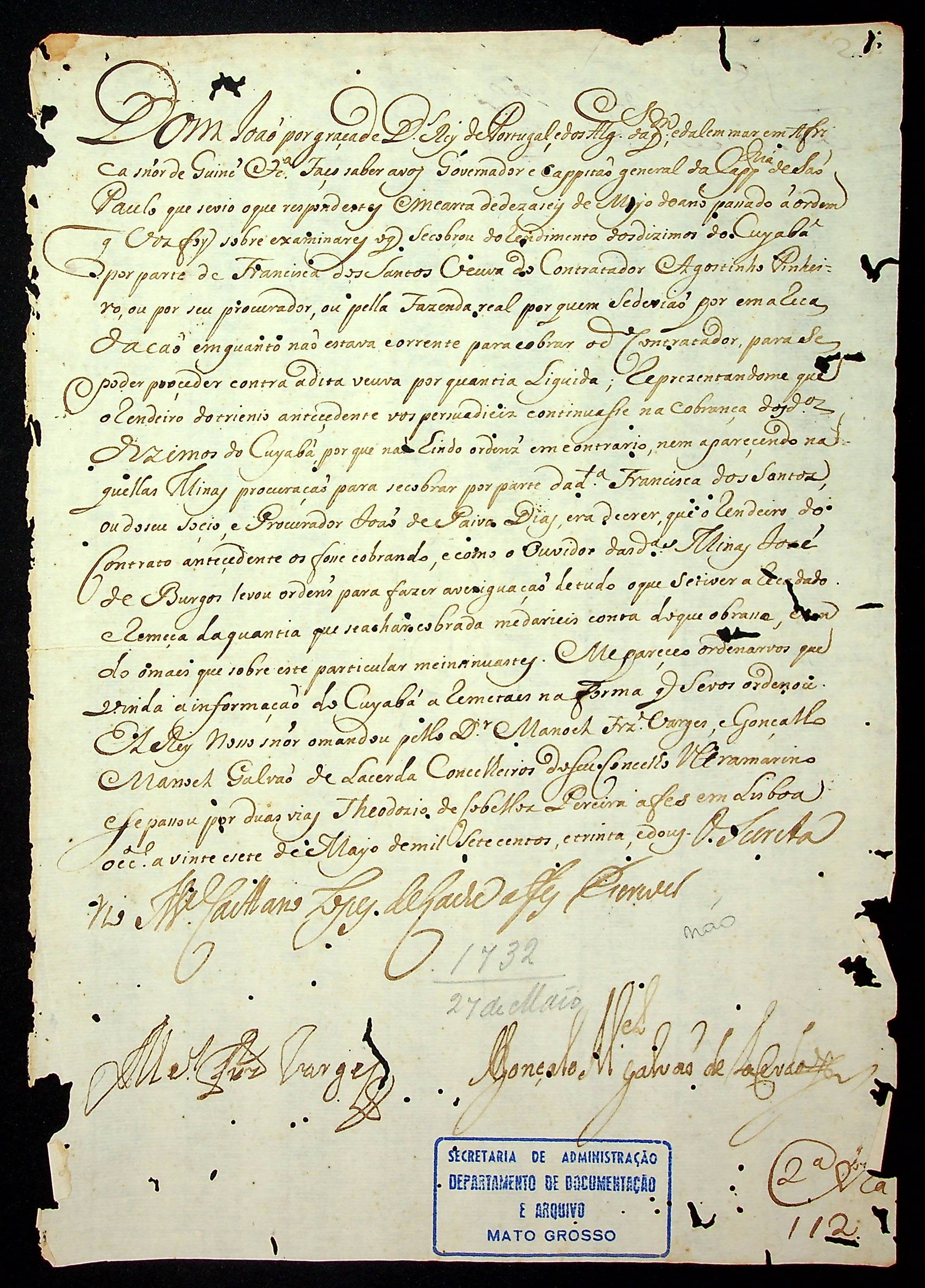 CARTA RÉGIA do Rei de Portugal Dom João, ao Governador e Capitão-General de São Paulo.
