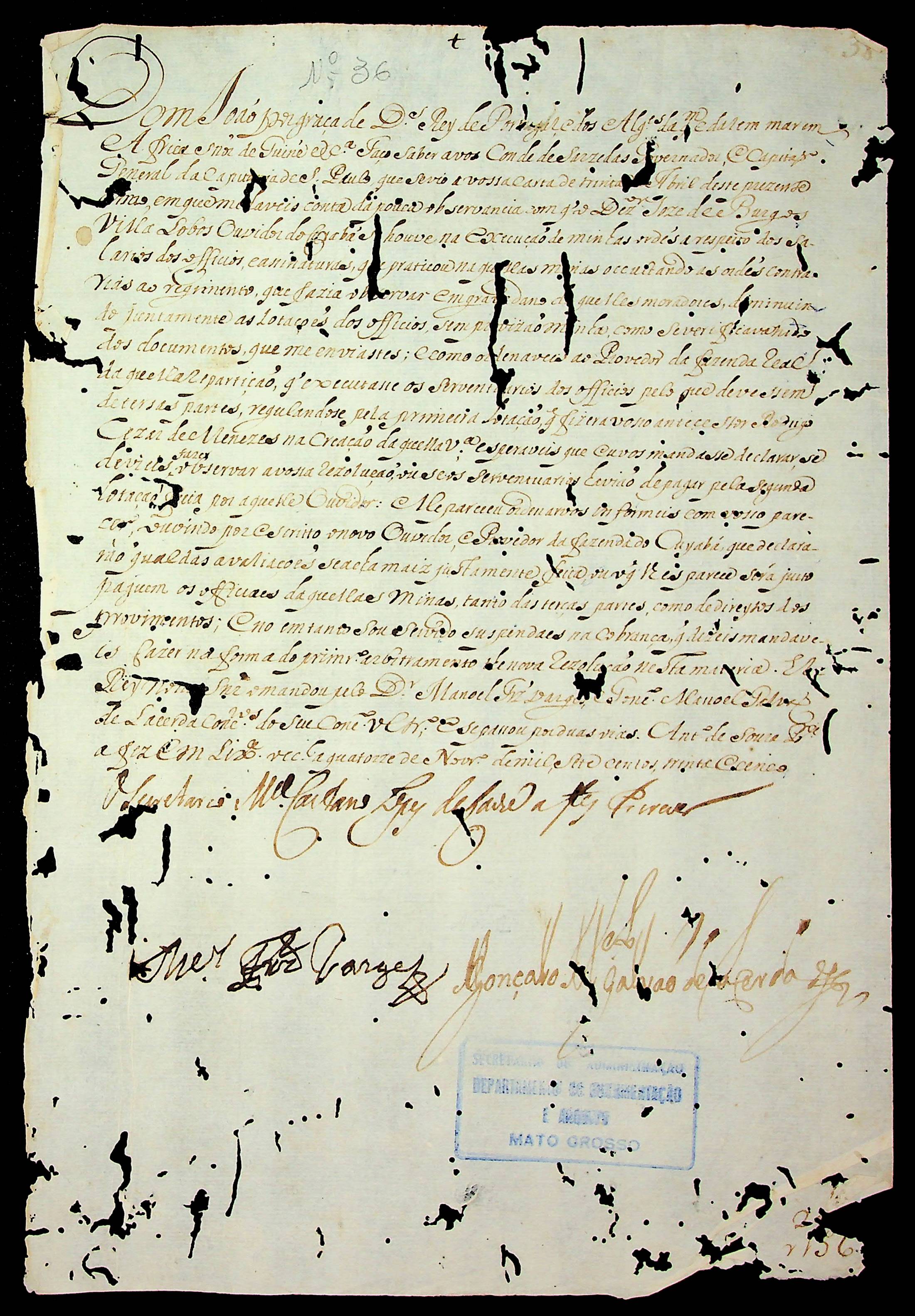 CARTA RÉGIA do Rei de Portugal Dom João ao Governador e Capitão-General da Capitania de São Paulo Antônio Luís Távola.