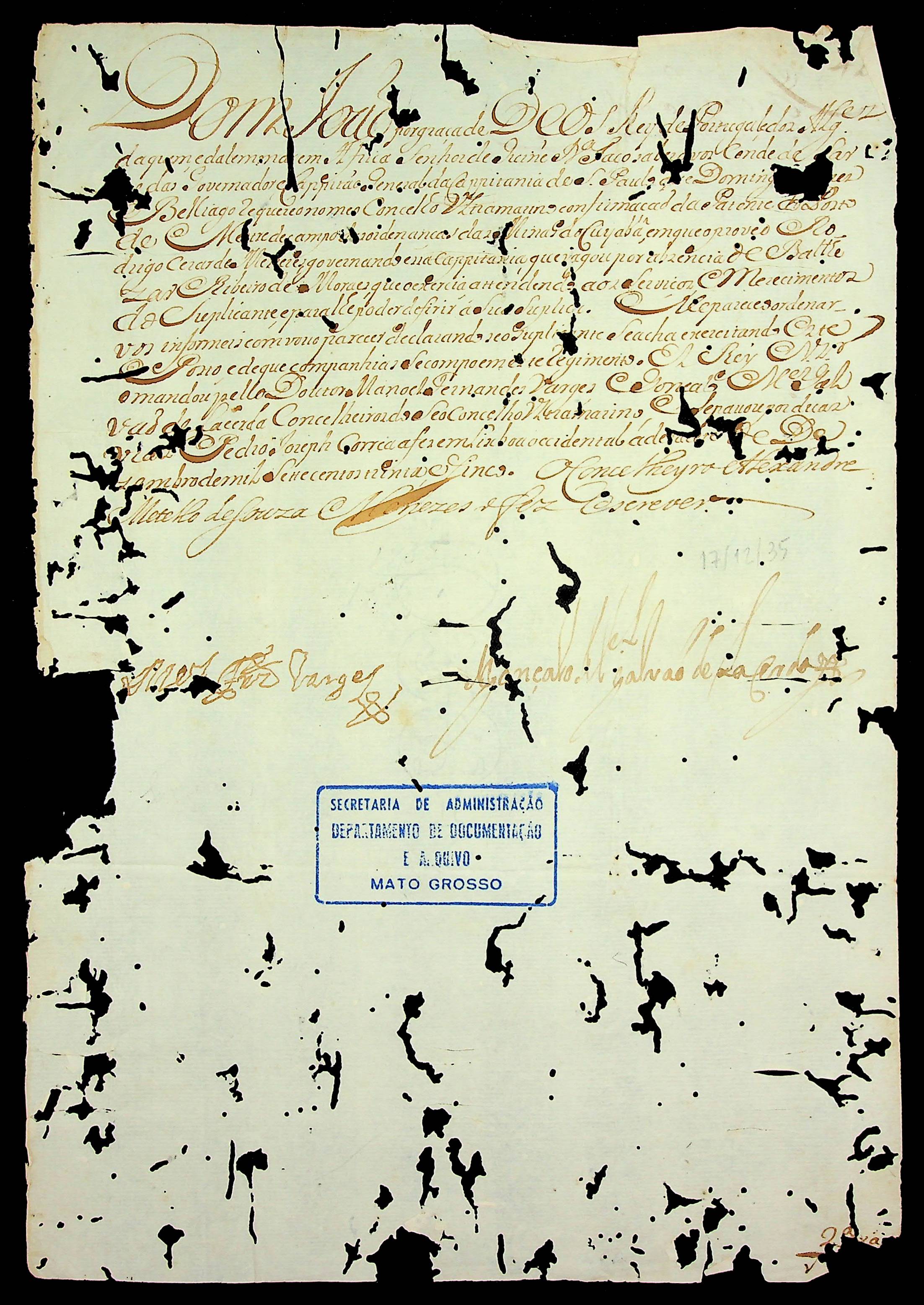 CARTA RÉGIA do Rei de Portugal Dom João ao Governador e Capitão-General da Capitania de São Paulo [Luís Antônio Távola].