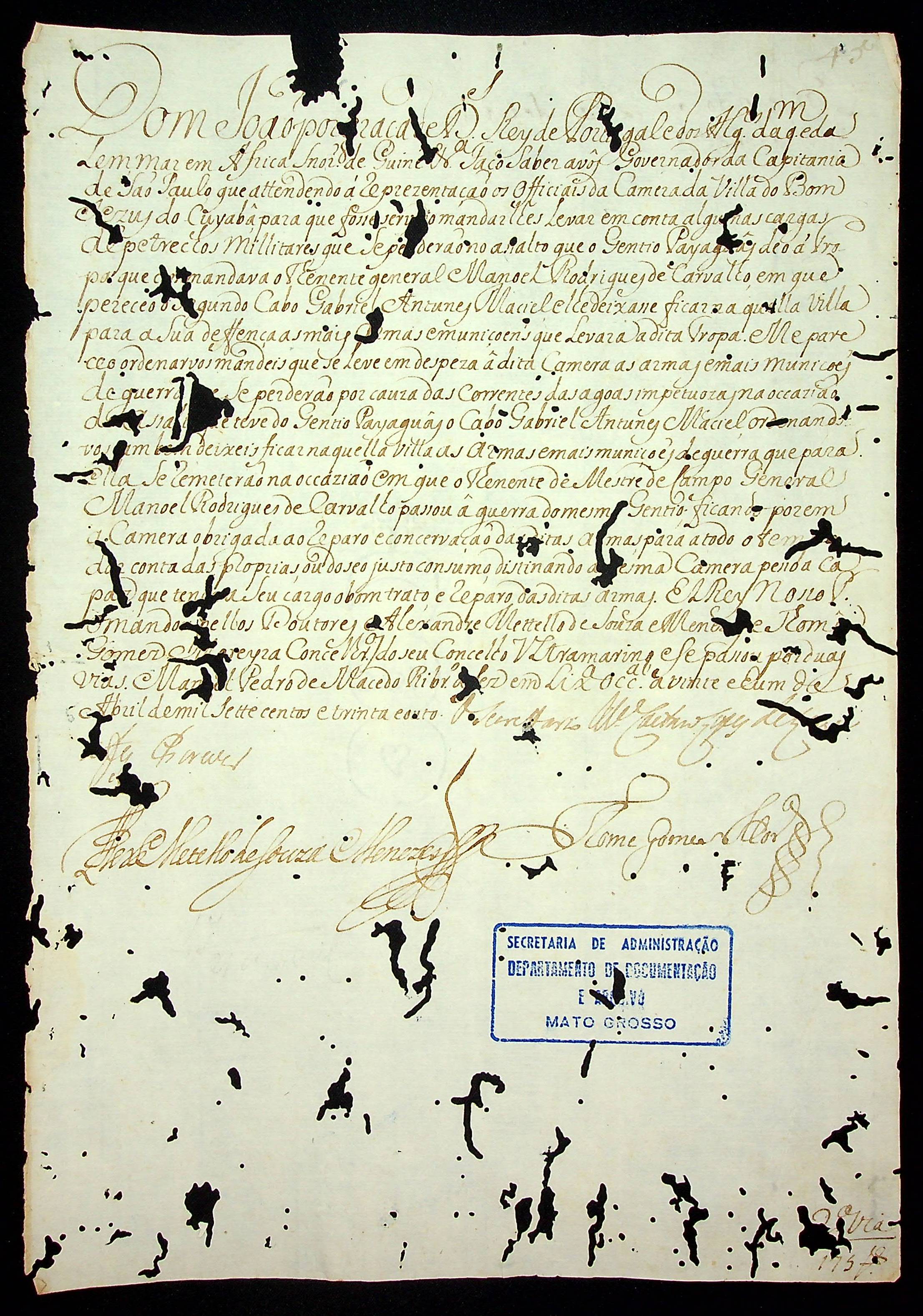 CARTA RÉGIA do Rei de Portugal Dom João ao Governador e Capitão-General da Capitania de São Paulo [Gomes Freire de Andrade].