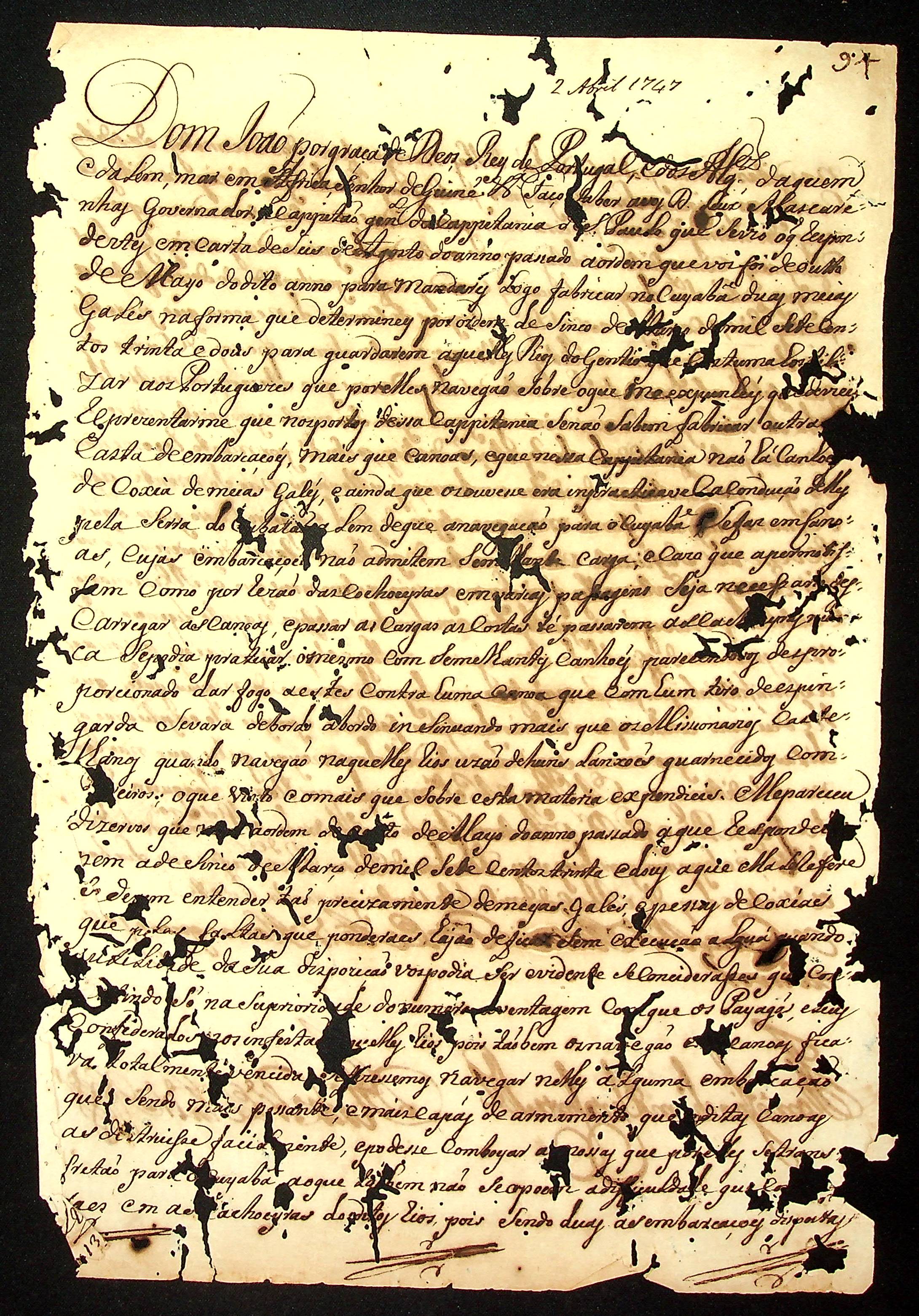 CARTA RÉGIA do Rei de Portugal Dom João ao Governador e Capitão-General da Capitania de São Paulo Luís de Mascarenhas.