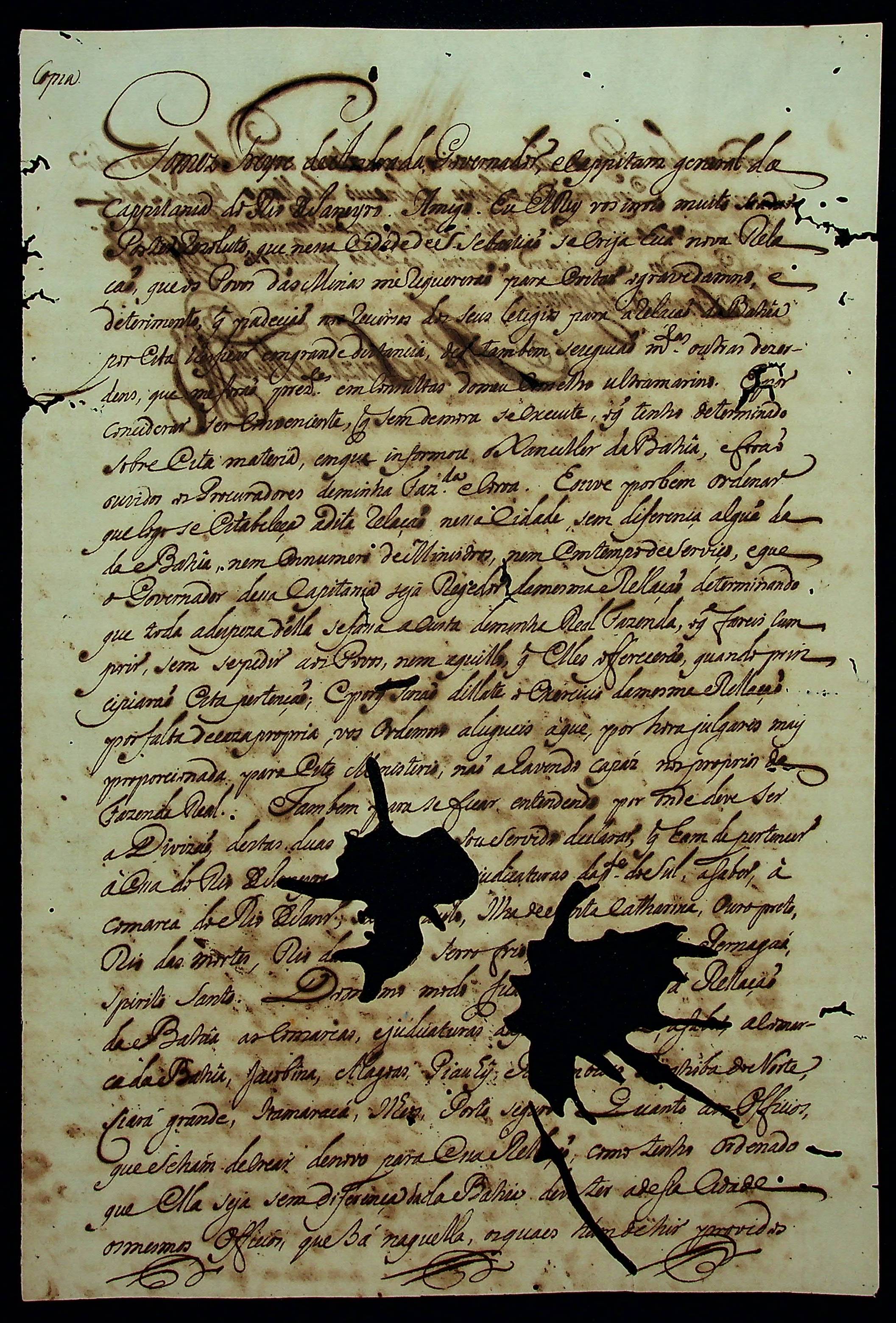 CARTA RÉGIA (Cópia) do Rei [D. José] ao Governador e Capitão-General da Capitania do Rio de Janeiro Gomes Freire de Andrade.