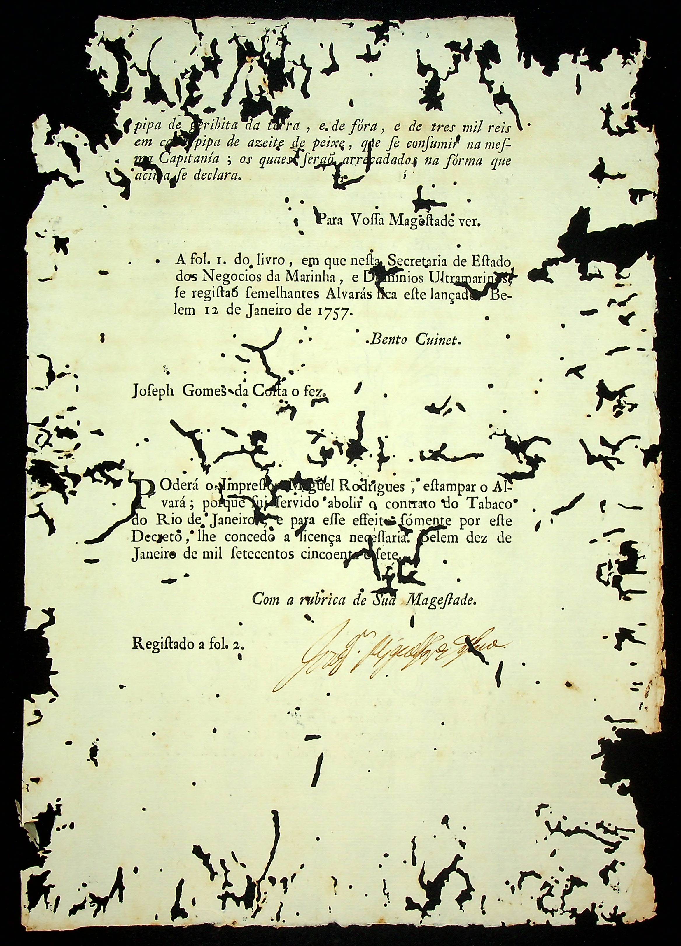 CARTA RÉGIA do Rei Dom José ao Governador e Capitão-General da Capitania de Mato Grosso [Antônio Rolim de Moura].