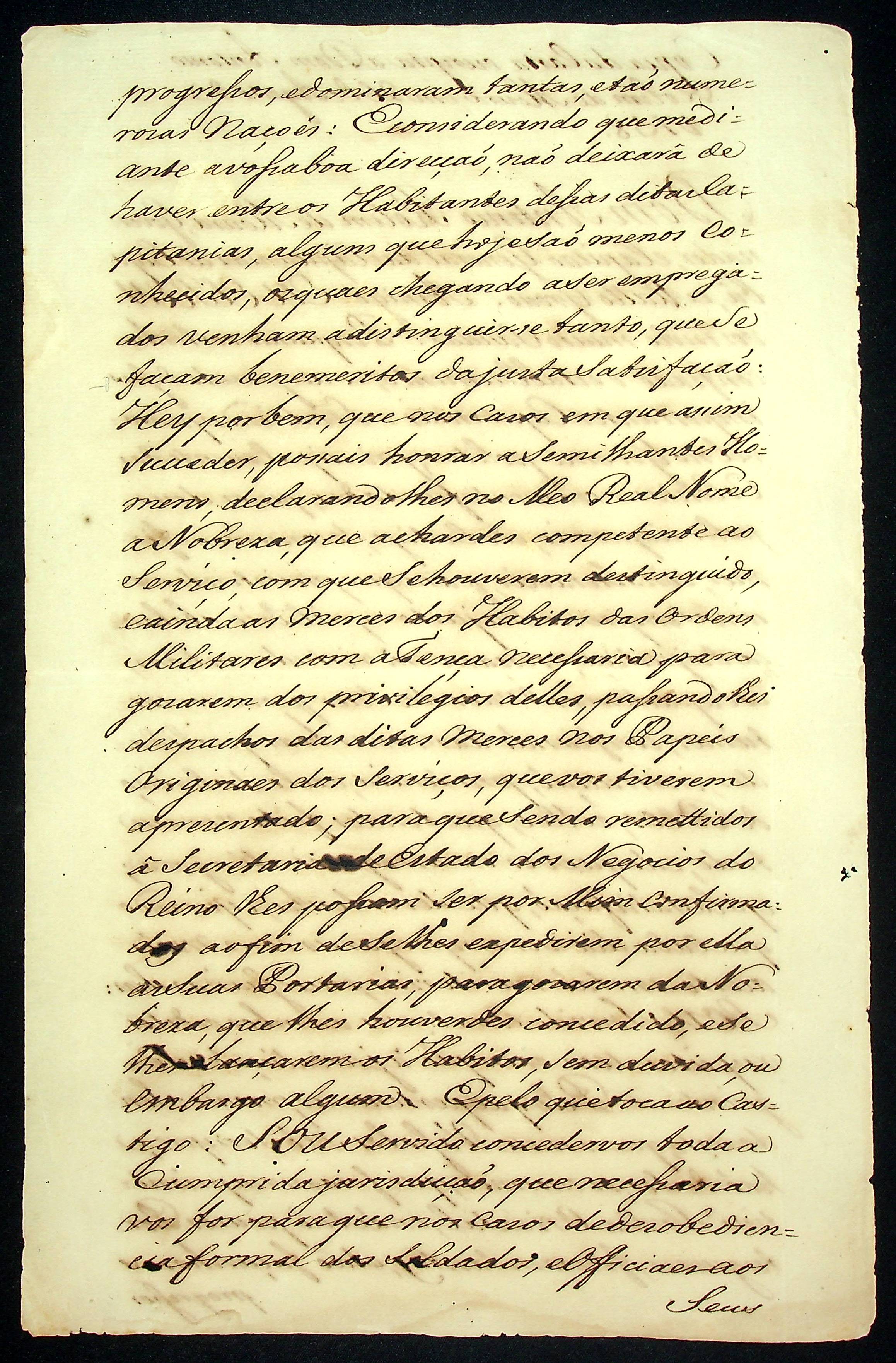 CARTA RÉGIA (Cópia) do Rei Dom José ao Governador e Capitão-General da Capitania de Mato Grosso Antônio Rolim de Moura.