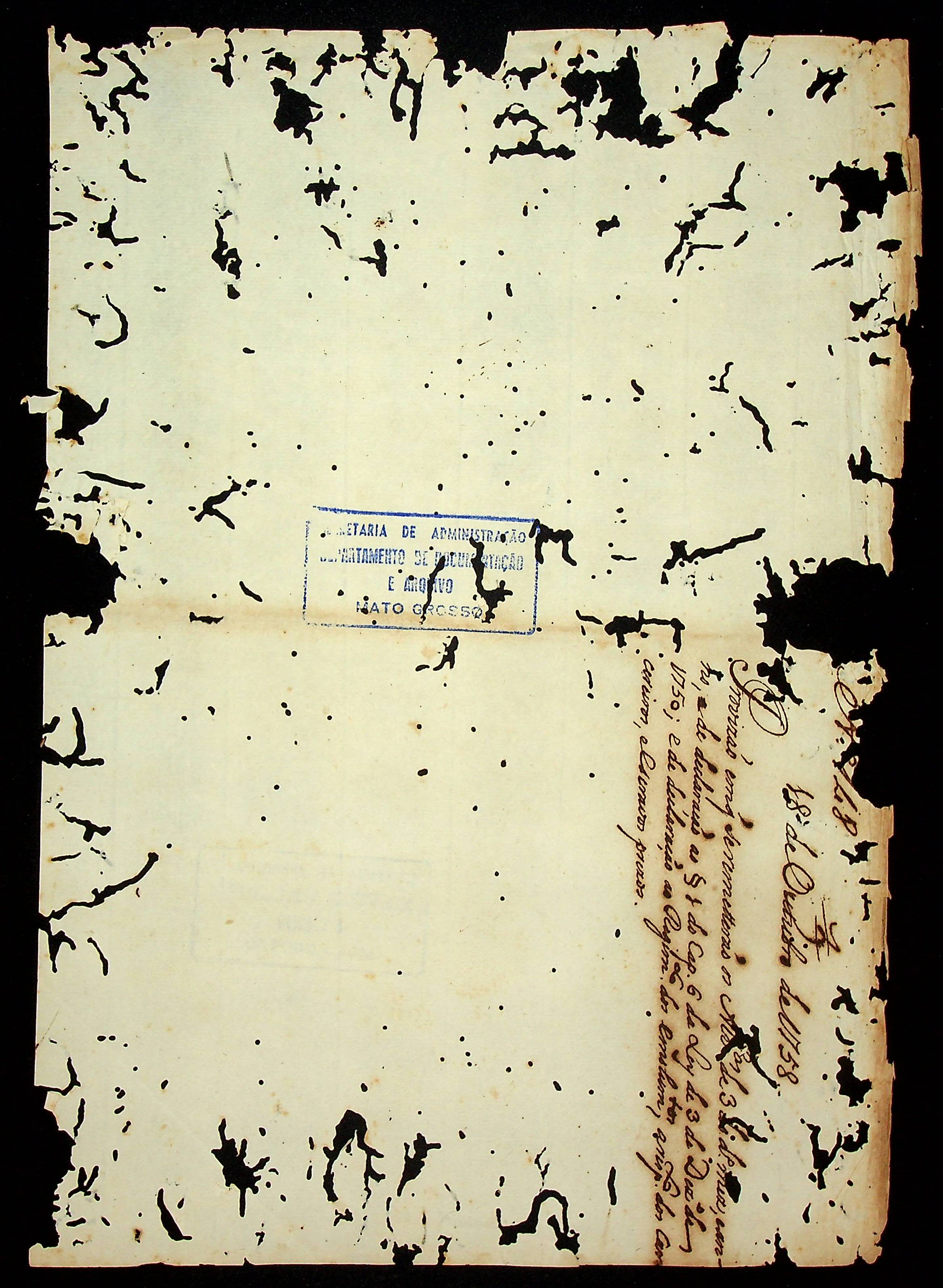 CARTA RÉGIA do Rei Dom José ao Governador e Capitão-General da Capitania de Mato Grosso Antônio Rolim de Moura.