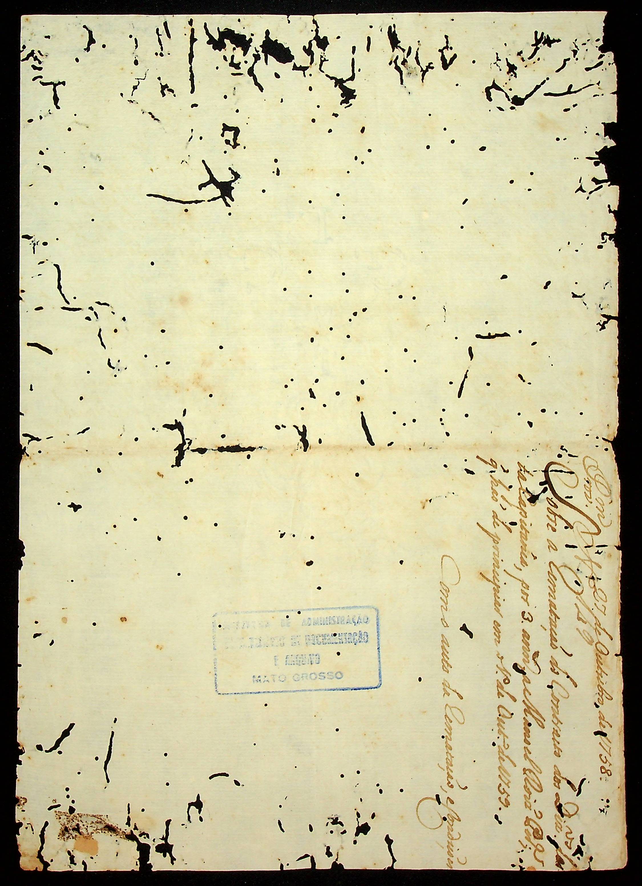 CARTA RÉGIA do Rei Dom José ao Governador e Capitão-General da Capitania de Mato Grosso Antônio Rolim de Moura.