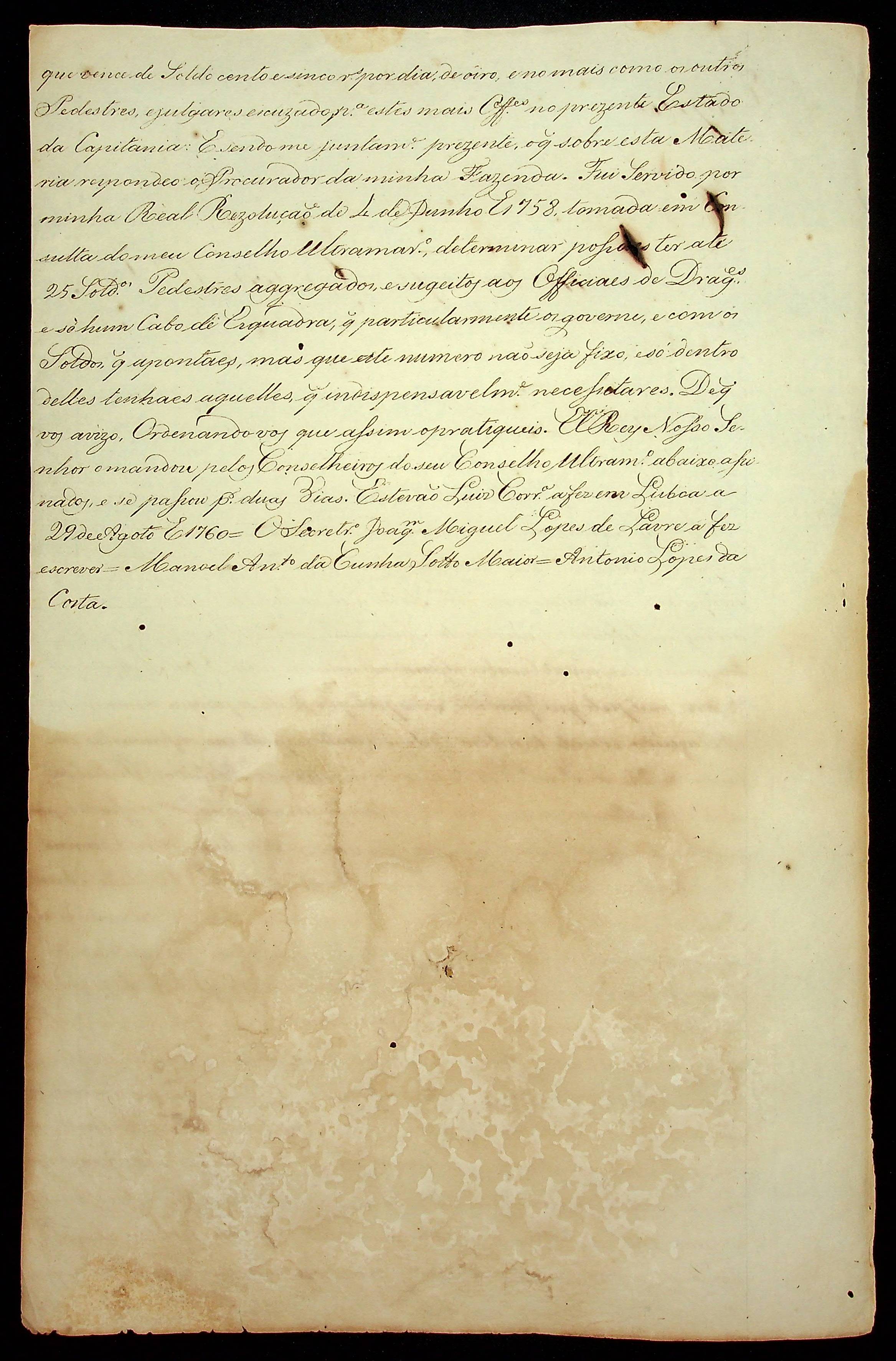 CARTA RÉGIA (cópia) do Rei Dom José I ao Governador e Capitão-General da Capitania de Mato Grosso Antônio Rolim de Moura.