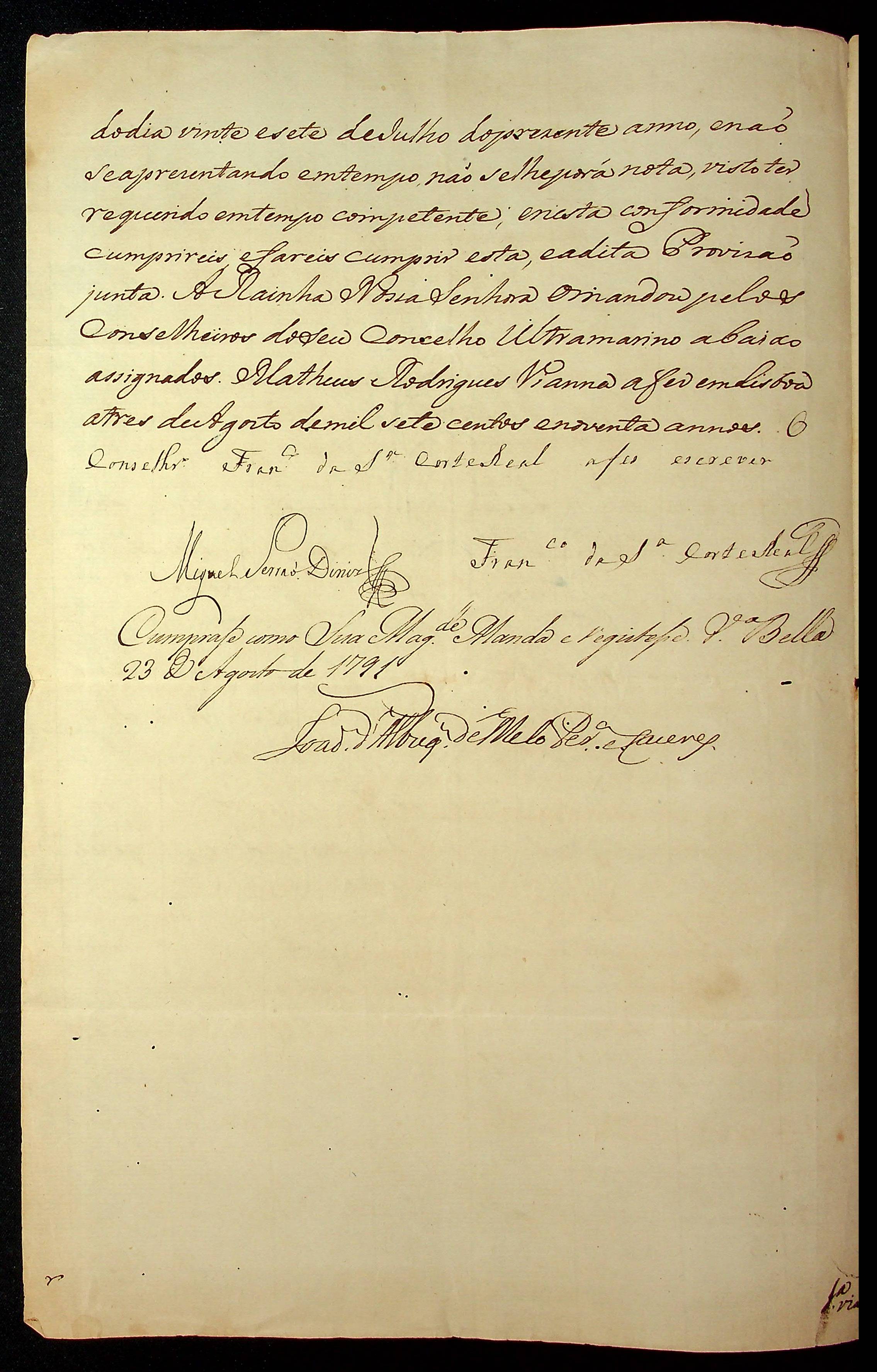 CARTA RÉGIA da Rainha Dona Maria I ao Governador e Capitão General da Capitania de Mato Grosso João de Albuquerque de Melo Pereira e Cáceres.