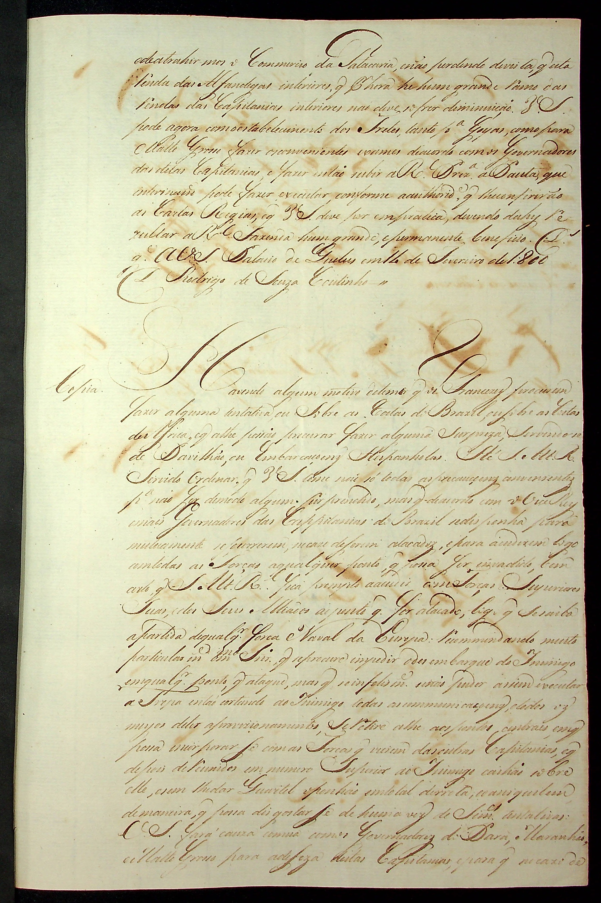 CARTA RÉGIA (conjunto de cópias) do Príncipe Regente [D.João VI] ao Governador e Capitão-General da Capitania de Goiás João Manoel de Meneses.