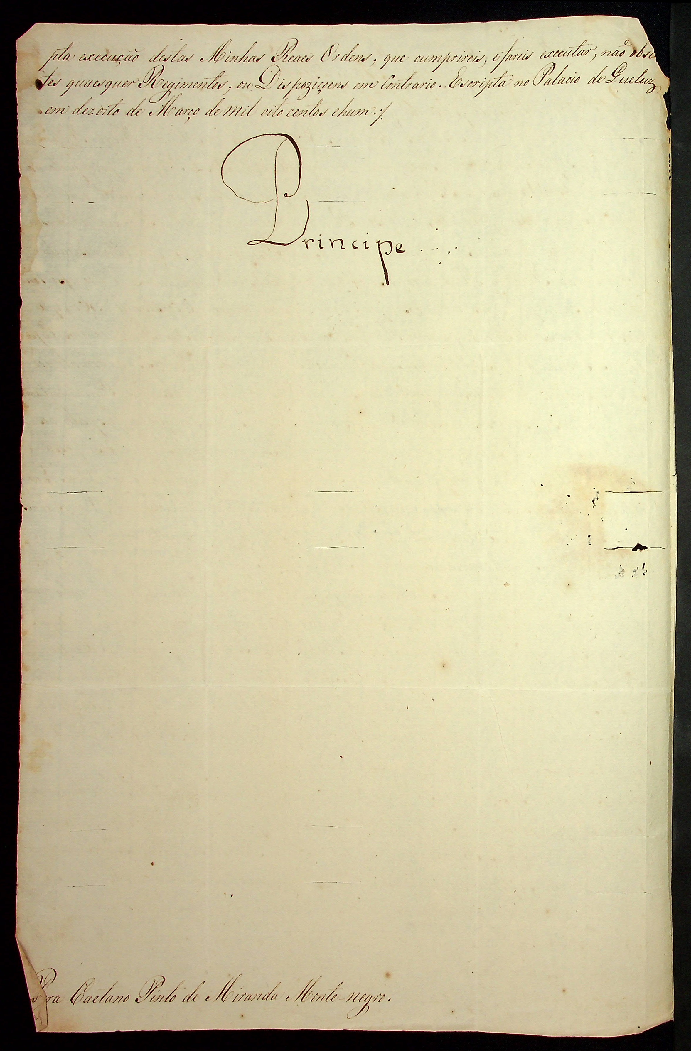 CARTA RÉGIA do Príncipe Regente [Dom João] ao Governador e Capitão General da Capitania de Mato Grosso Caetano Pinto de Miranda e Montenegro.