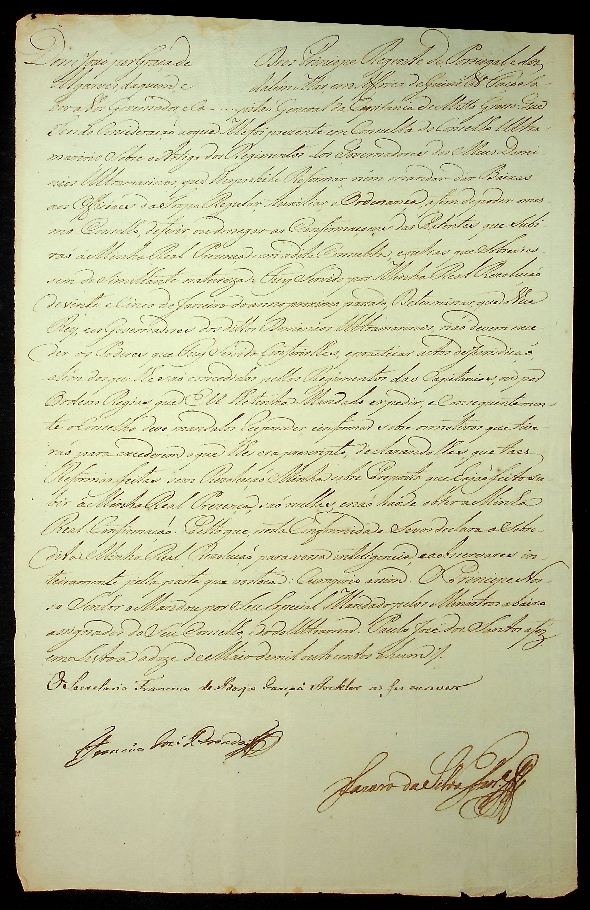 CARTA RÉGIA do Príncipe Regente D. João para o Governador e Capitão General da Capitania de Mato Grosso Caetano Pinto de Miranda e Montenegro.