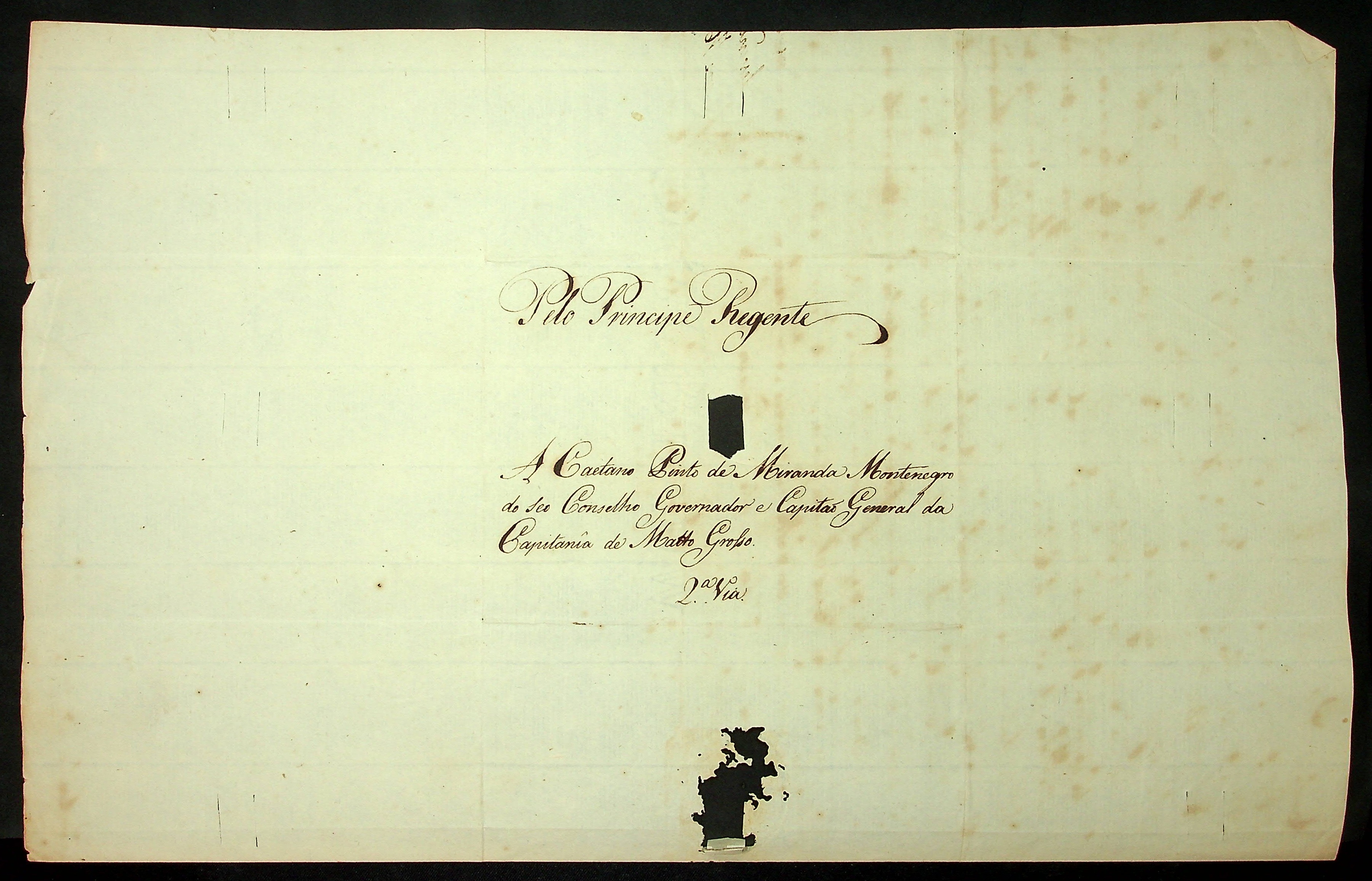 CARTA RÉGIA do Príncipe [D. João] ao Governador e Capitão-General da Capitania de Mato Grosso Caetano Pinto de Miranda e Montenegro.