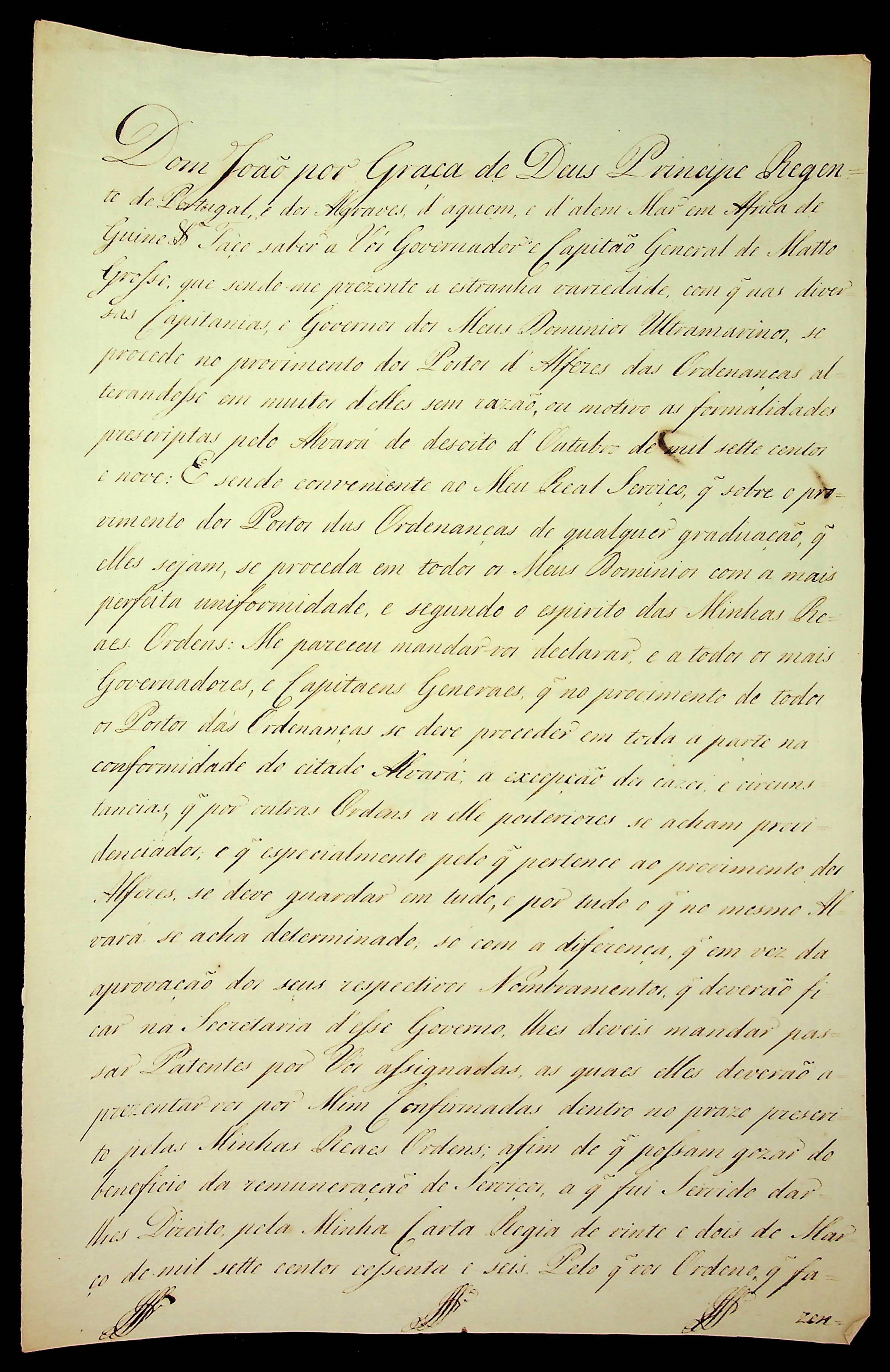 CARTA RÉGIA do Príncipe Regente D. João ao [Governador e Capitão-General da Capitania de Mato Grosso] Manoel Carlos de Abreu e Menezes.
