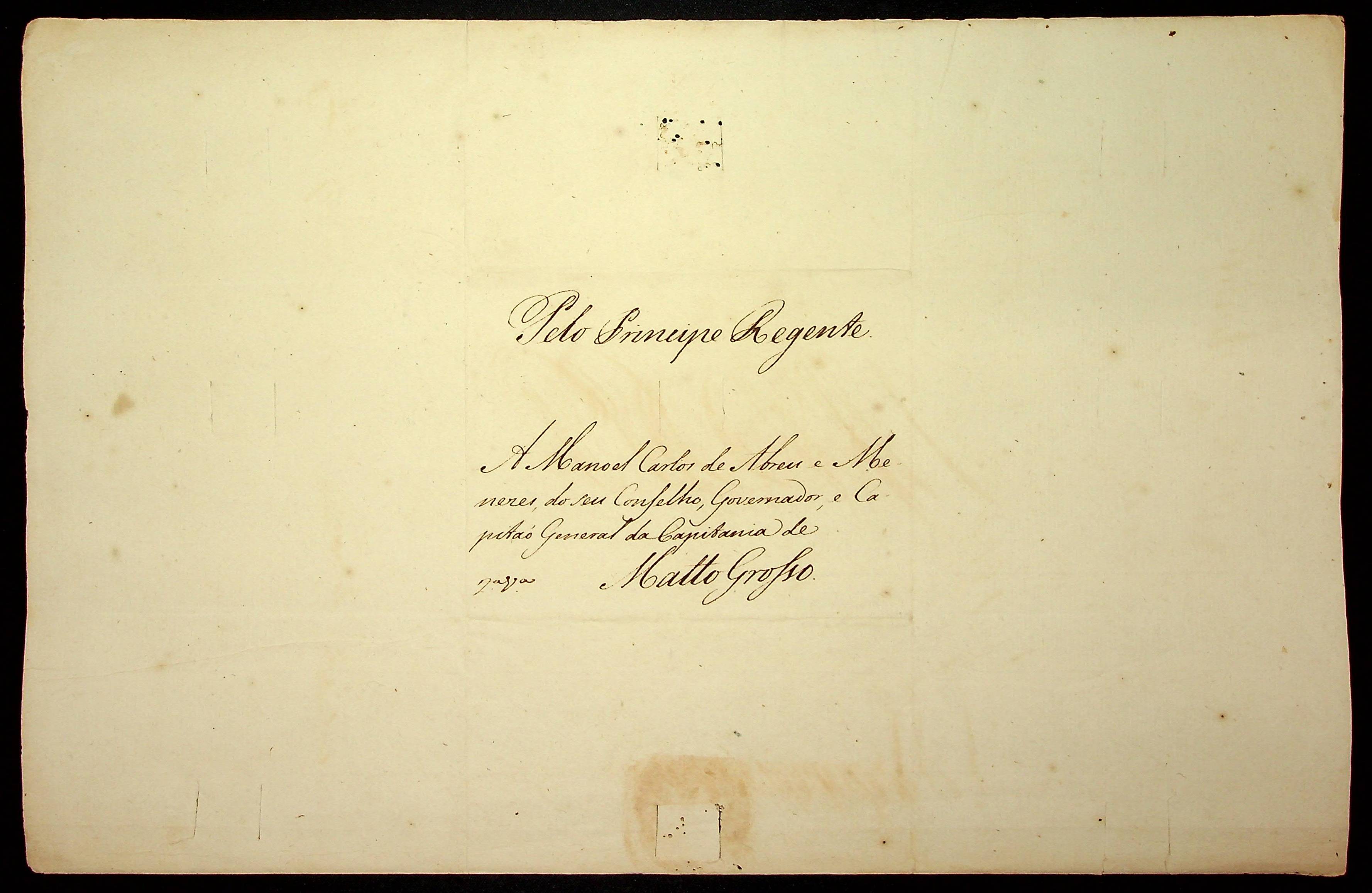 CARTA RÉGIA expedida pelo Príncipe Regente Dom João ao Governador e Capitão-General da Capitania de Mato Grosso Manoel Carlos de Abreu e Menezes.