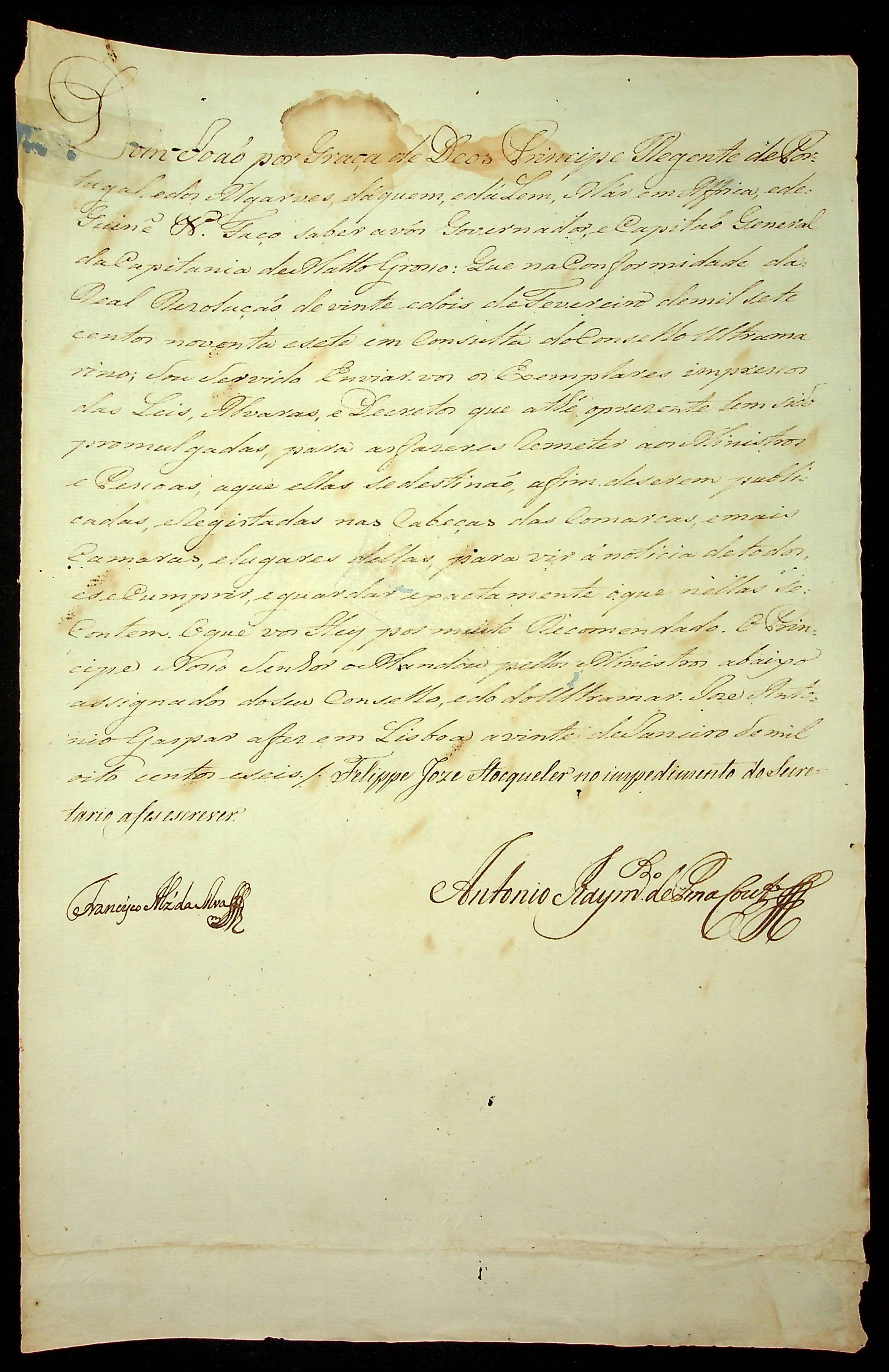 CARTA RÉGIA do Príncipe Regente D.João para o Governador e Capitão General da Capitania de Mato Grosso.
