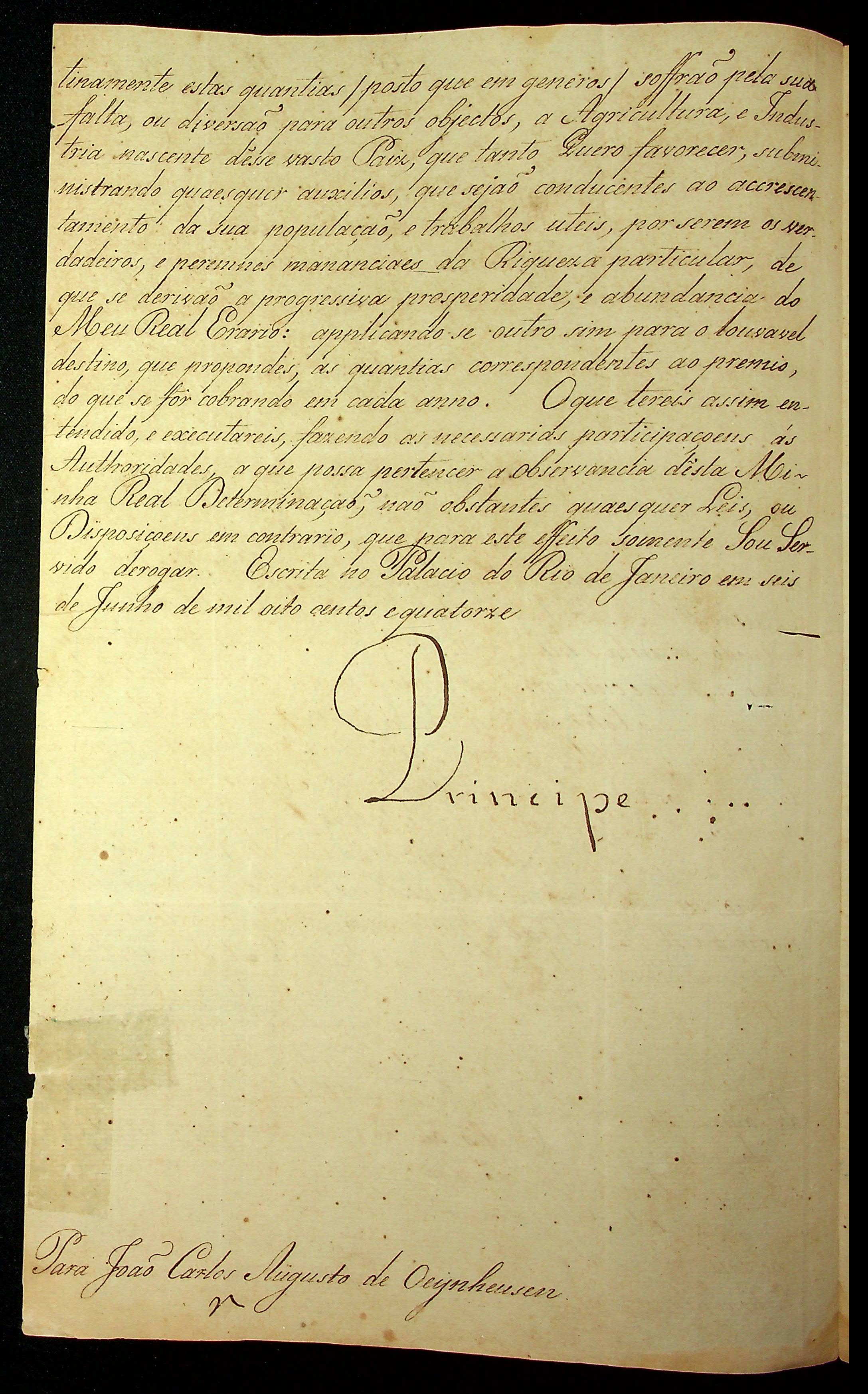 CARTA RÉGIA do Príncipe Regente [D. João] ao Governador e Capitão-General da Capitania de Mato Grosso João Carlos Augusto D' Oeynhausen e Gravemberg.