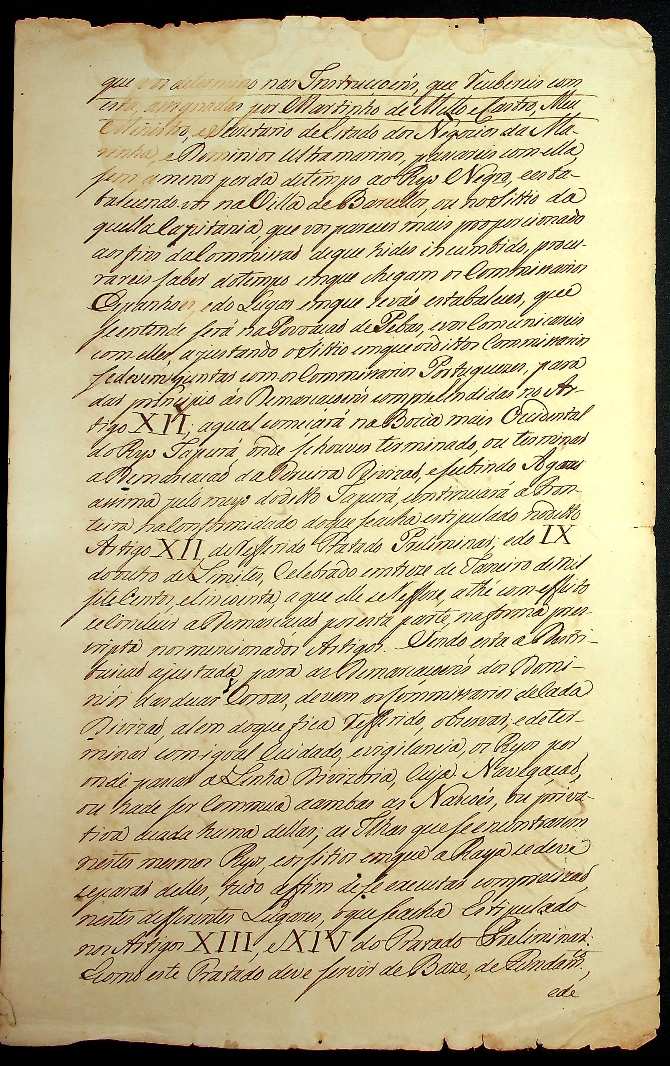 CARTA RÉGIA da Rainha D. Maria I à João Pereira Caldas sobre os artigos relativos ao tratado preliminar de demarcação de limites.