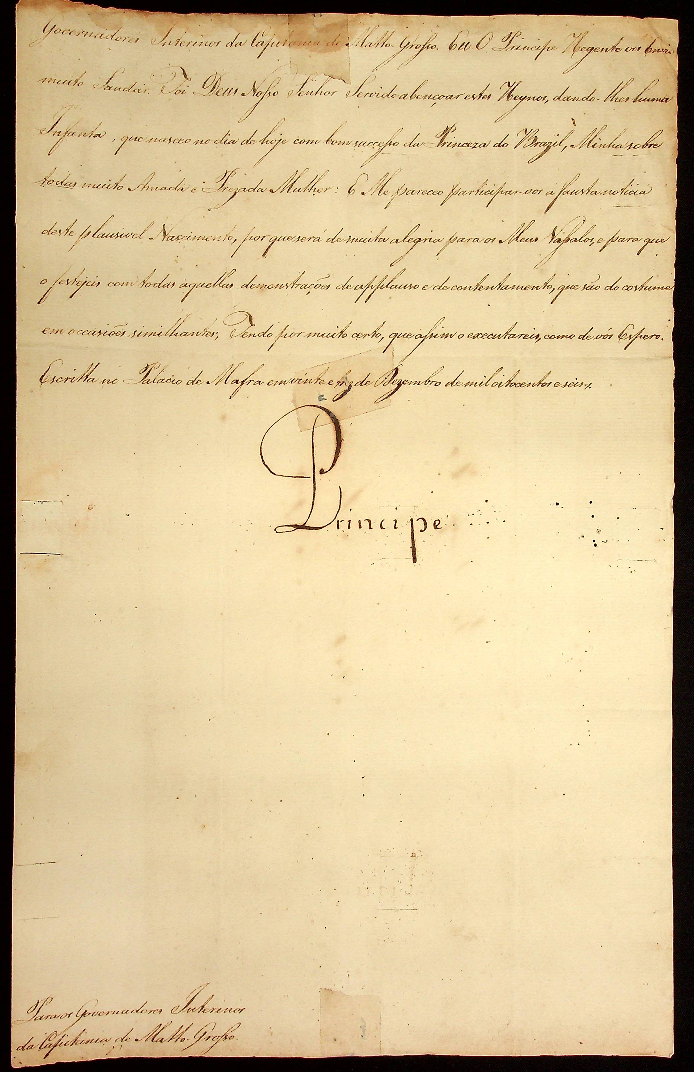 CARTA RÉGIA do Príncipe Regente D. João à [Terceira Junta Governativa da Capitania de Mato Grosso].