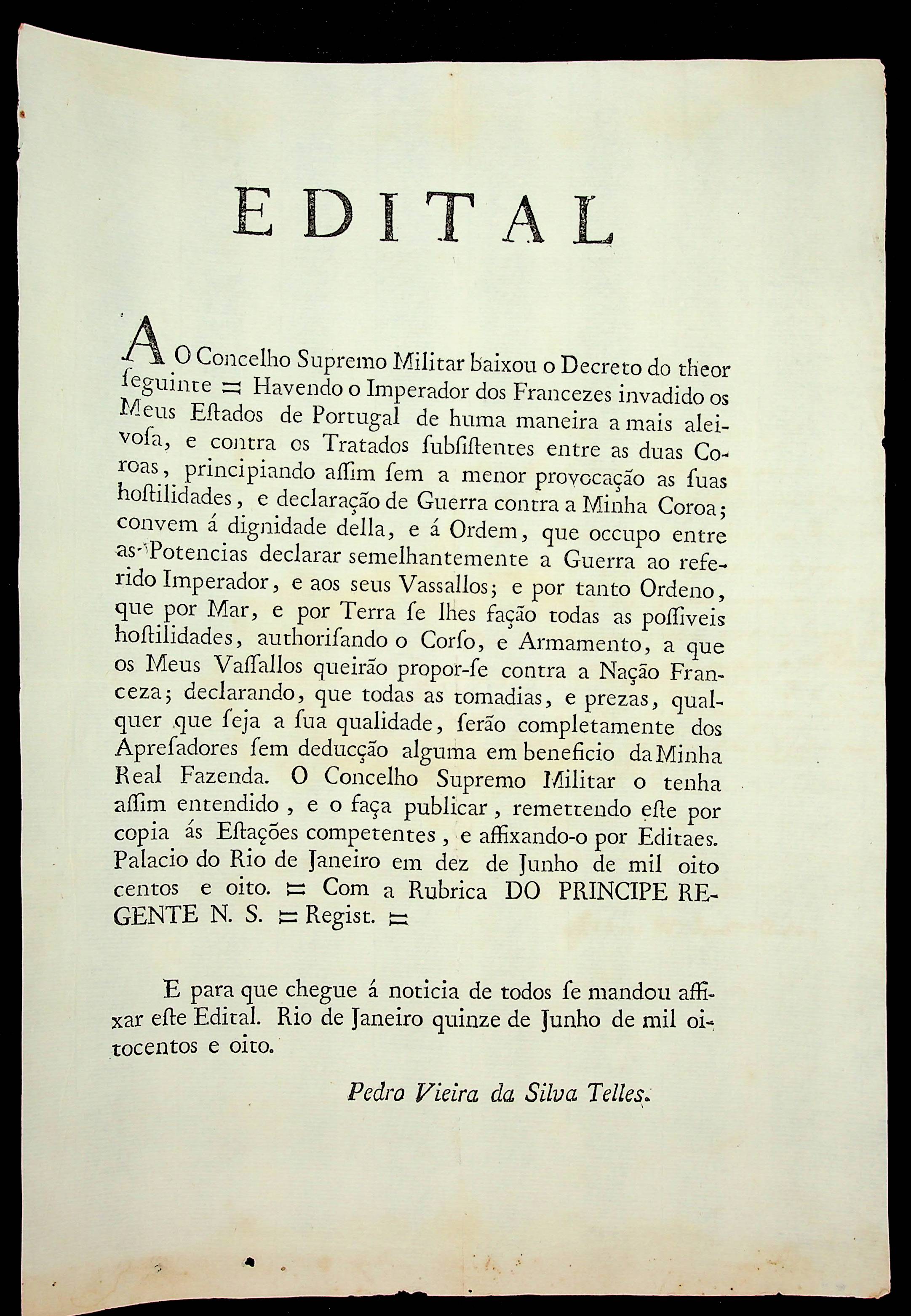 DECRETO do Príncipe Regente [D. João] decretando que as justificações de serviços das Capitanias desde a Paraíba inclusive para o Norte, com as Interiores até a de Mato Grosso inclusive, se continuem a fazer como até agora perante os Governadores e Capitães-Generais e Ouvidores dos Comarcas.