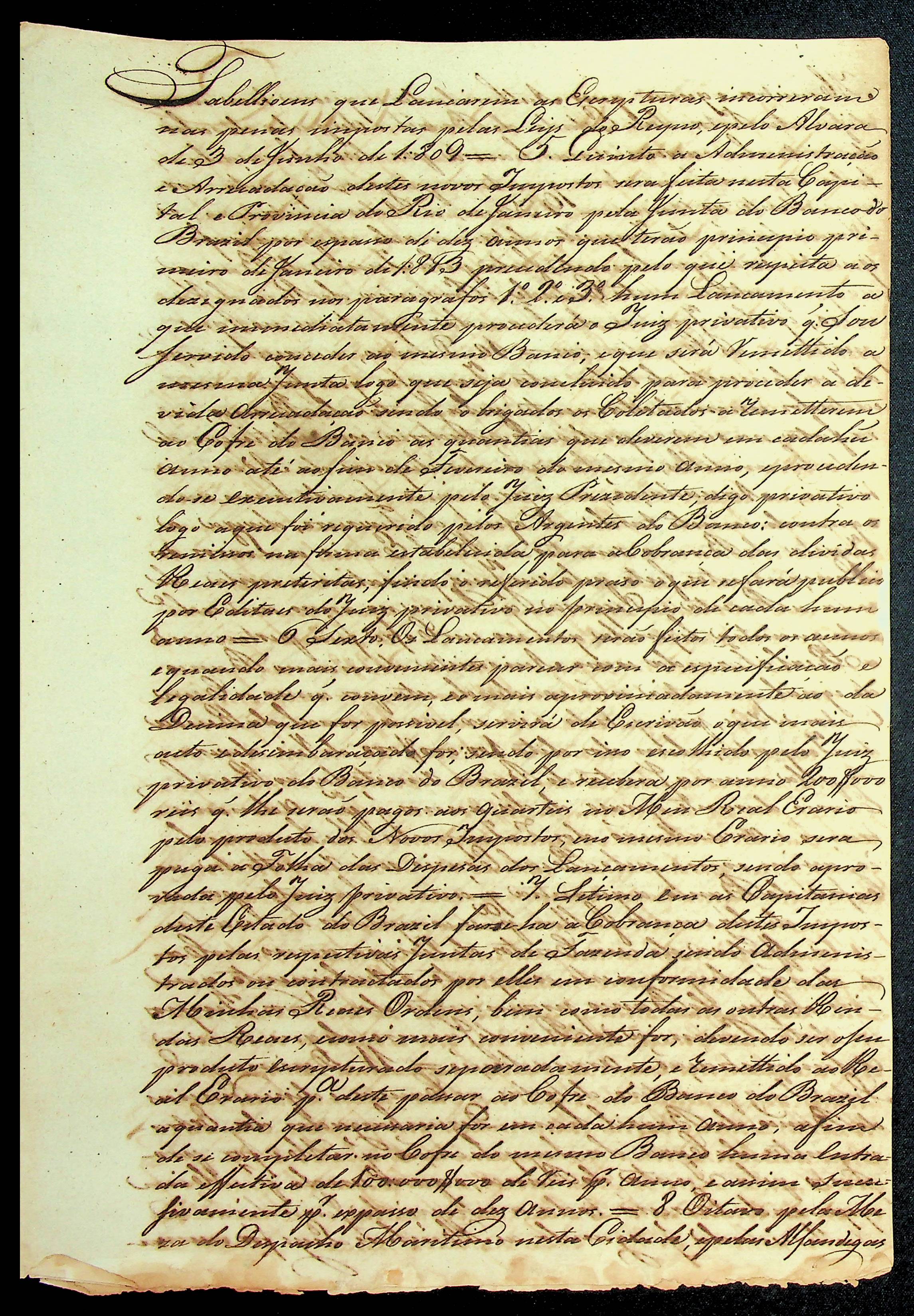 DECRETO do Príncipe Regente D. João criando o Banco do Brasil.