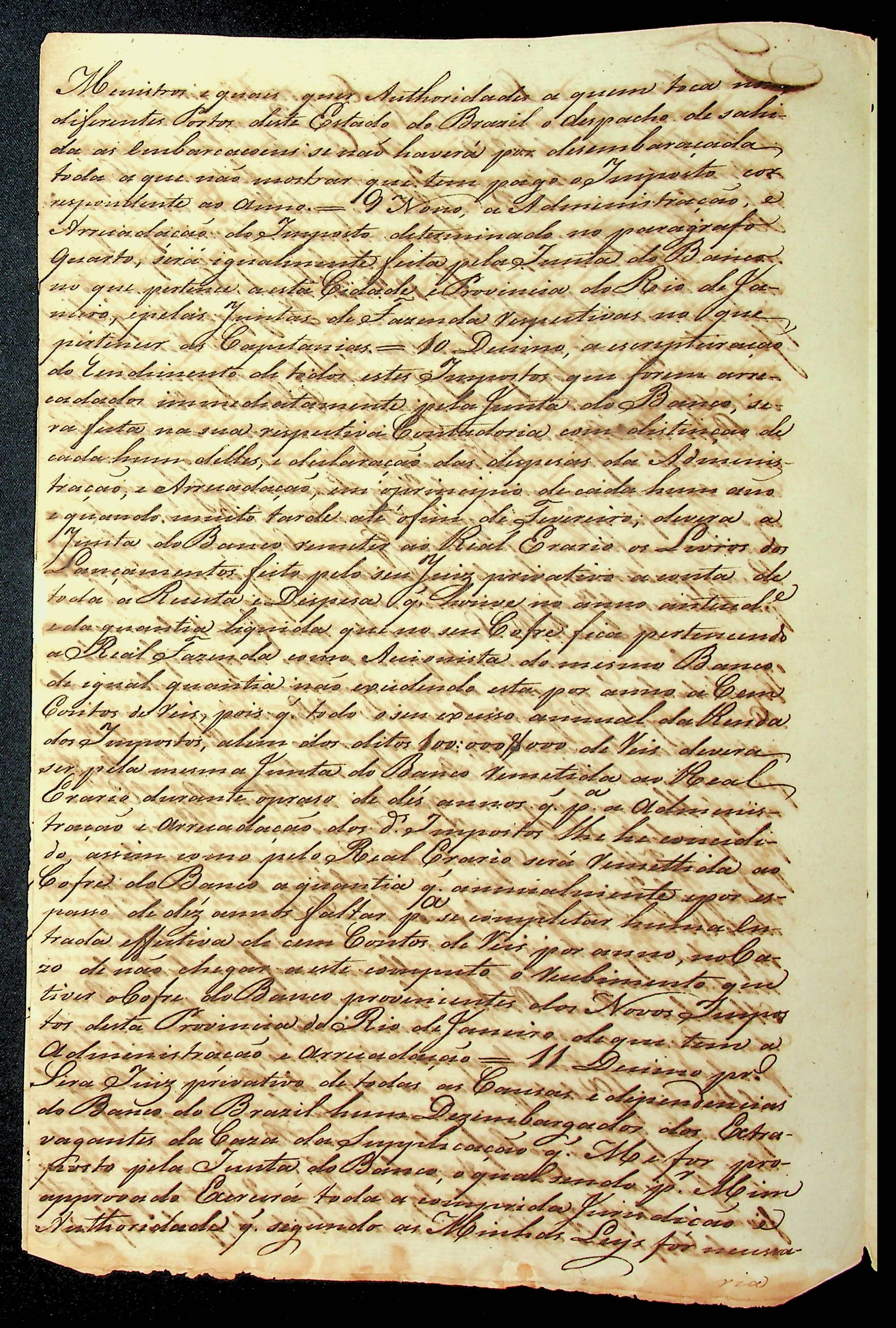 DECRETO do Príncipe Regente D. João criando o Banco do Brasil.