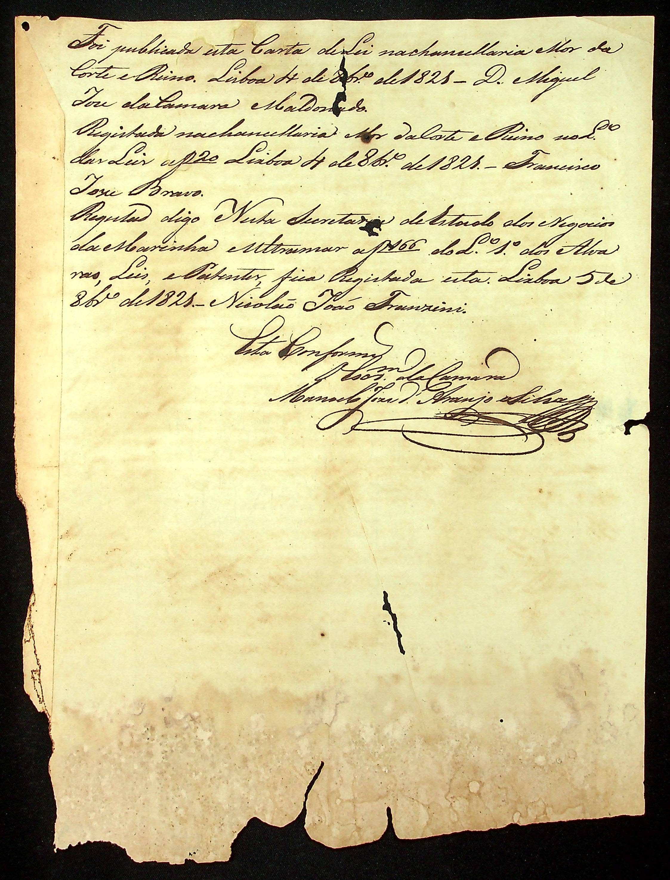 DECRETO (cópia) expedido por Dom João criando as Juntas Governativas provisórias nas províncias do Brasil.