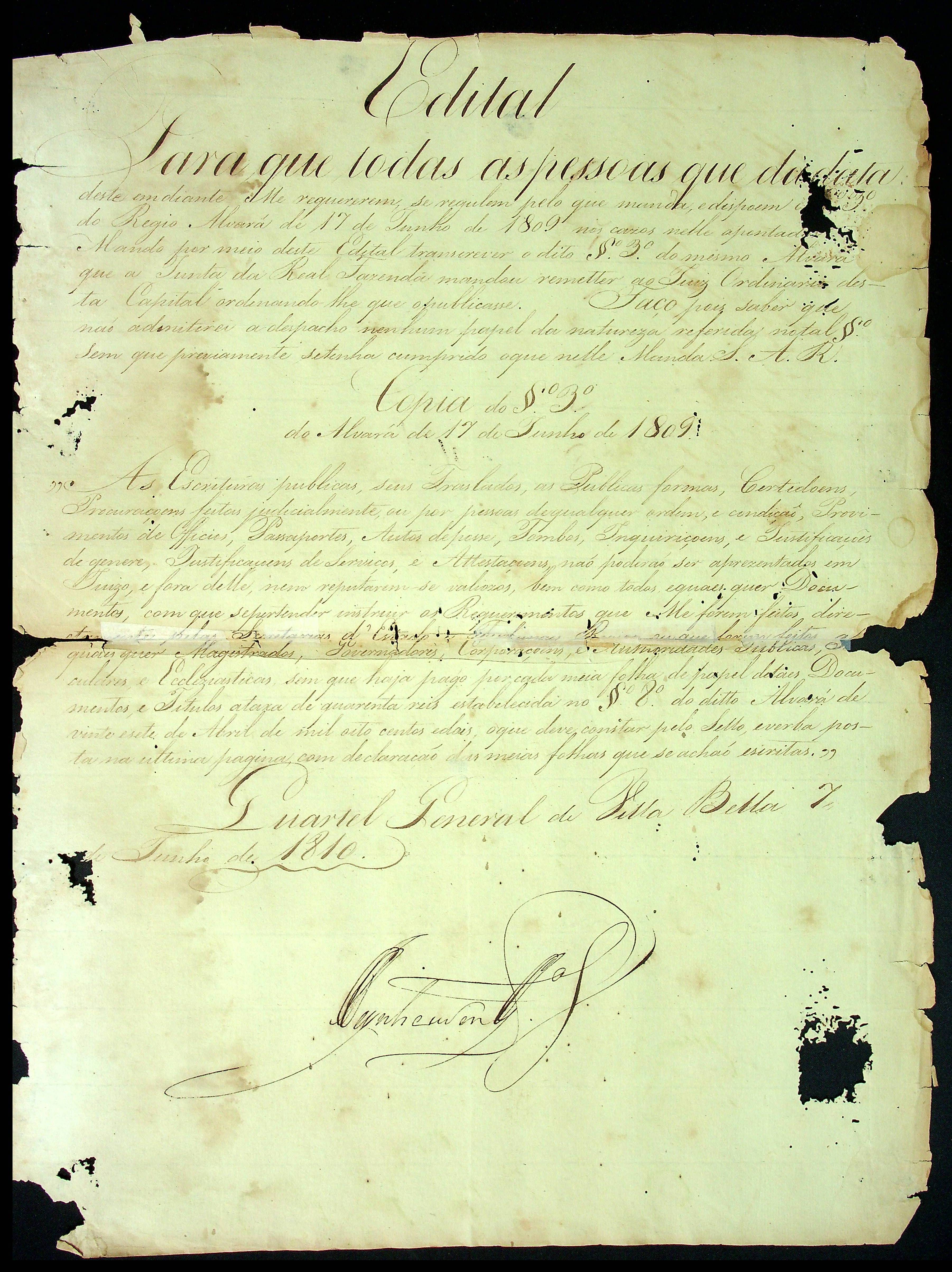 EDITAL expedido pelo Governador e Capitão-General da Capitania de Mato Grosso João Carlos Augusto D’Oeynhausen e Gravemberg.