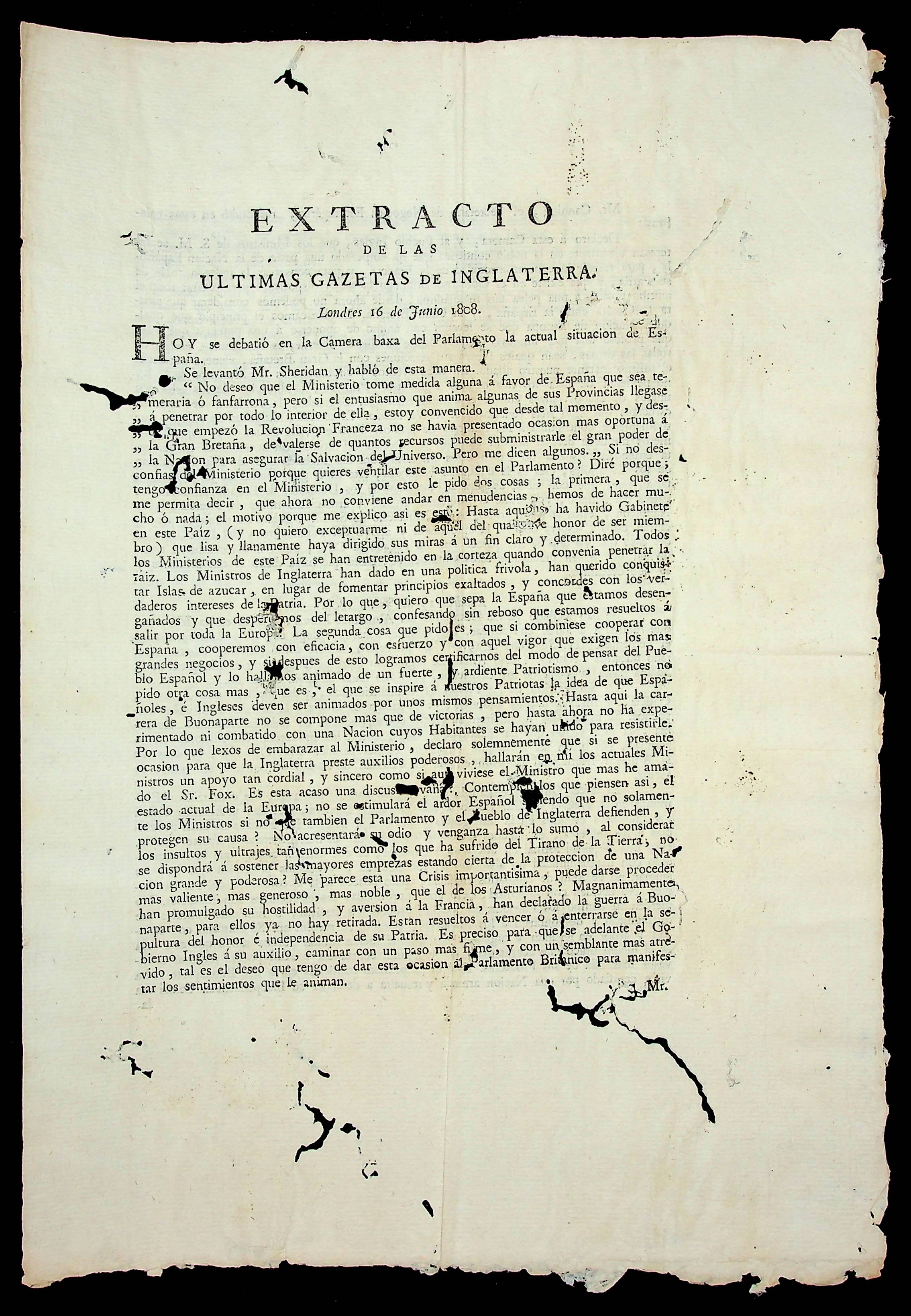 GAZETA (Extrato) das últimas Gazeta da Inglaterra dos dias 16 e 17 de junho de 1808.