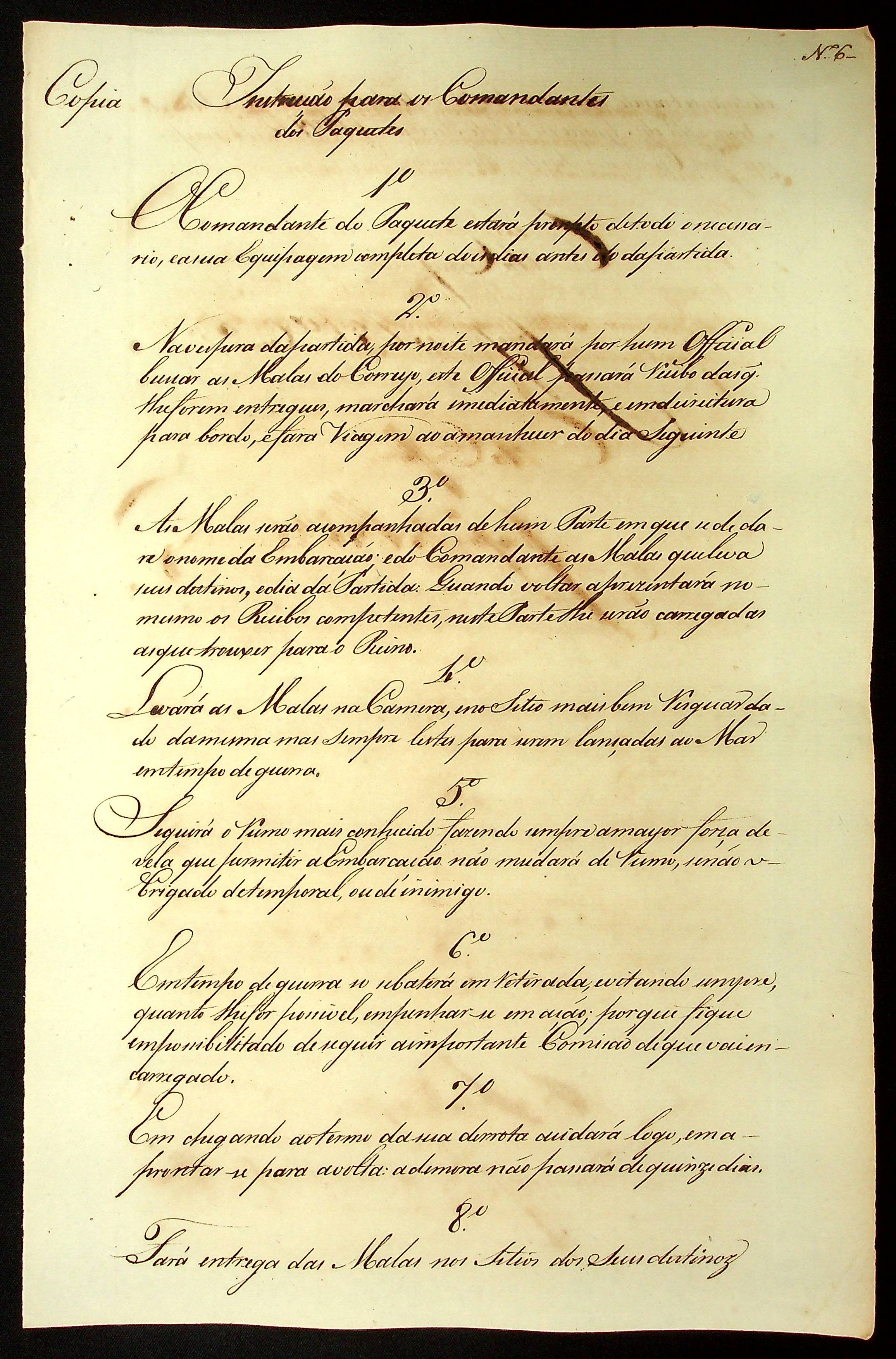 INSTRUÇÃO (conjunto) para os Correios do Reino, Correio da América, para as Juntas de Fazenda do Estado do Brasil sobre os Correios, para os Comandantes de Paquetes e para a remessa de encomendas pelos Paquetes Marítimos.