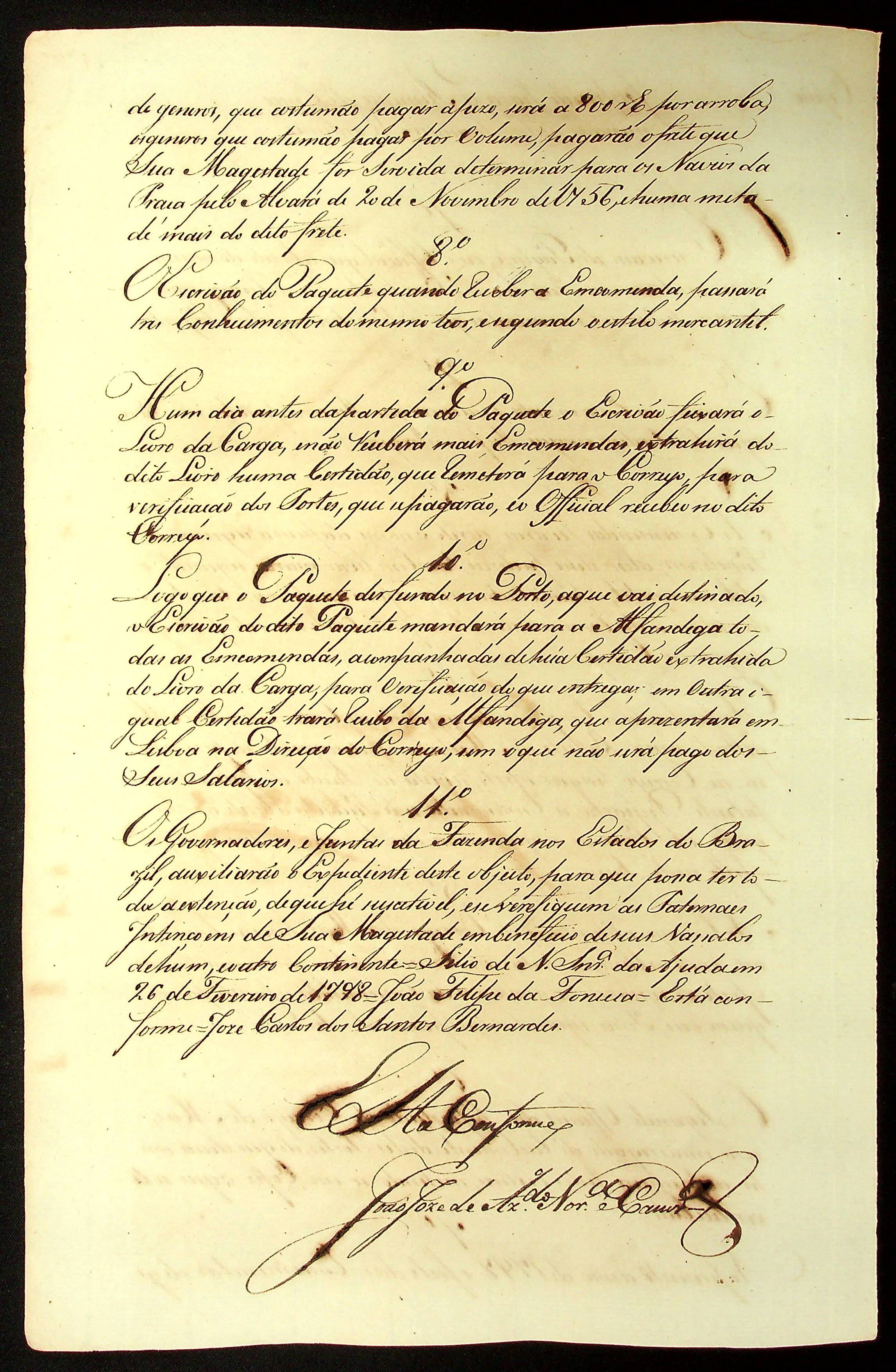 INSTRUÇÃO (conjunto) para os Correios do Reino, Correio da América, para as Juntas de Fazenda do Estado do Brasil sobre os Correios, para os Comandantes de Paquetes e para a remessa de encomendas pelos Paquetes Marítimos.