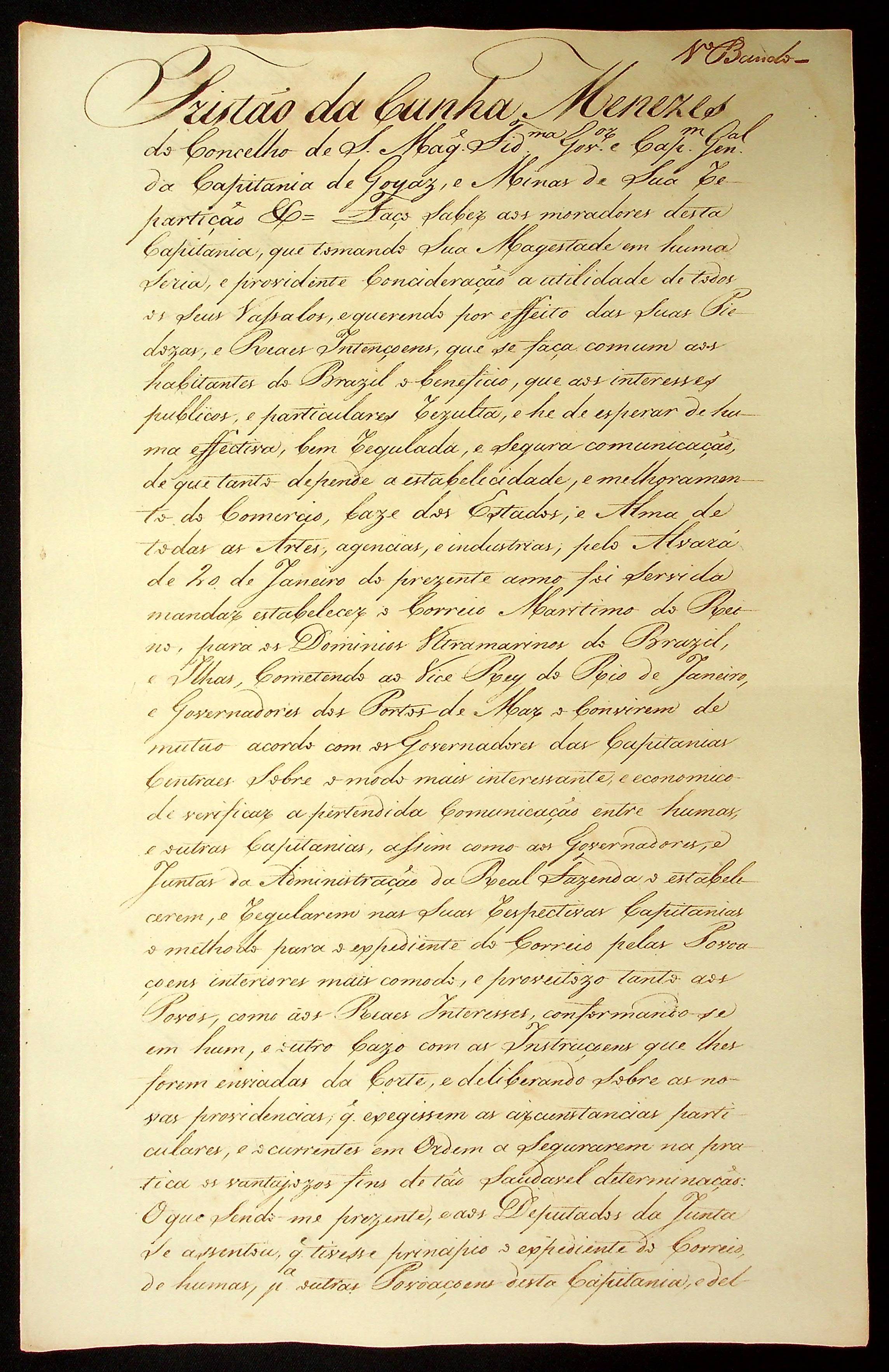 INSTRUÇÃO (conjunto) para os Correios do Reino, Correio da América, para as Juntas de Fazenda do Estado do Brasil sobre os Correios, para os Comandantes de Paquetes e para a remessa de encomendas pelos Paquetes Marítimos.