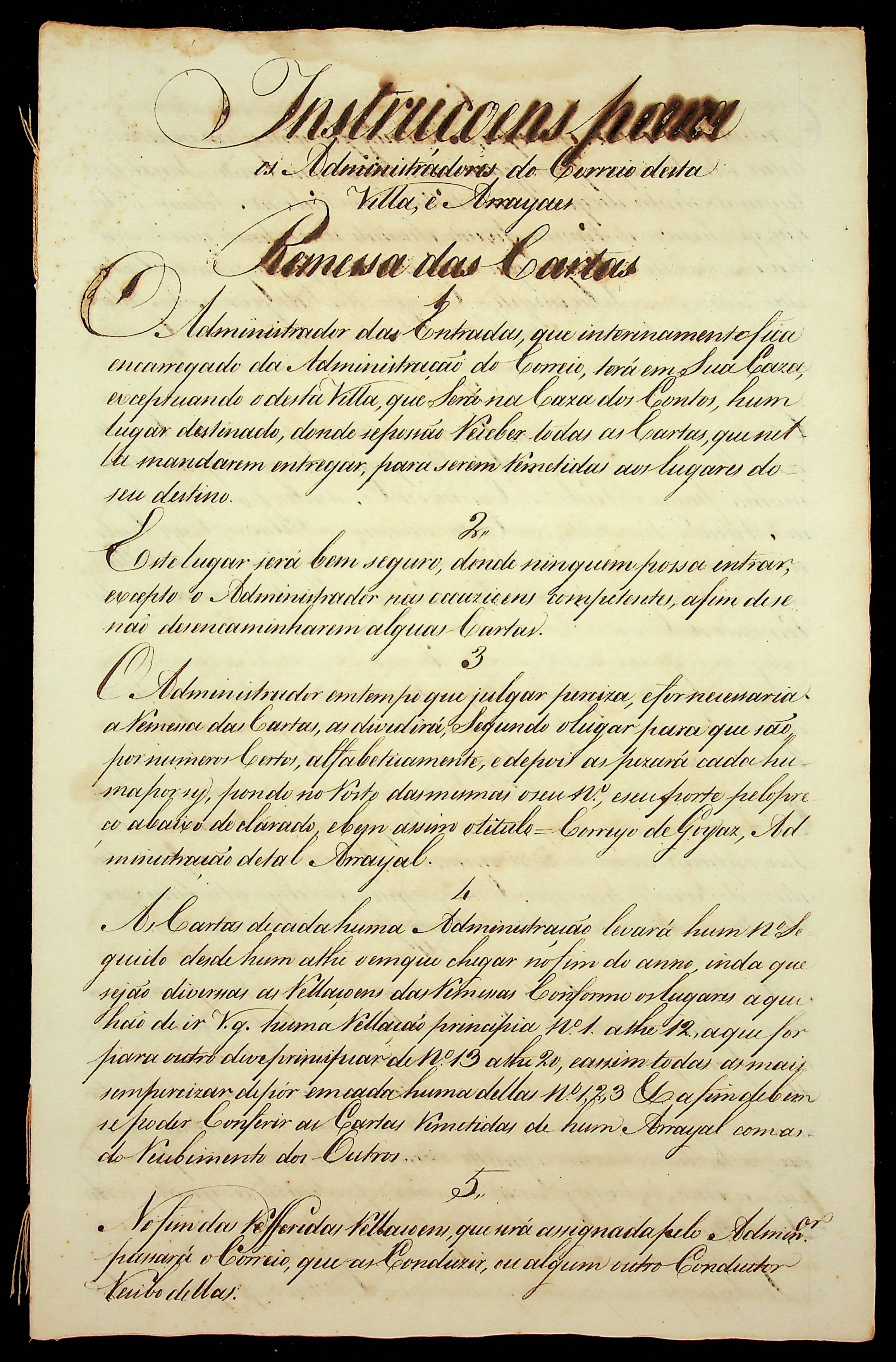 INSTRUÇÃO para os administradores do correio da Vila e arraiais.