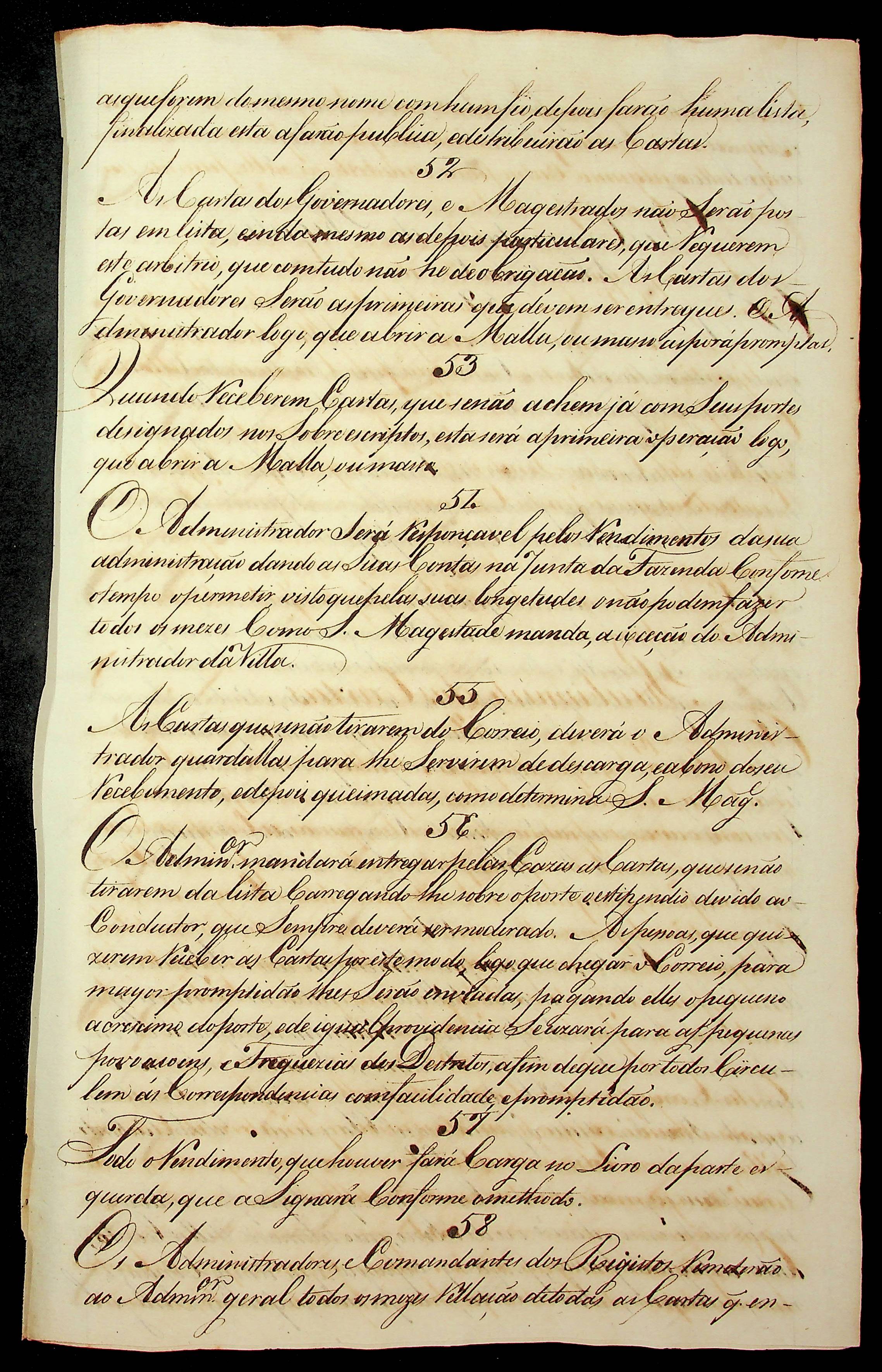 INSTRUÇÃO para os administradores do correio da Vila e arraiais.