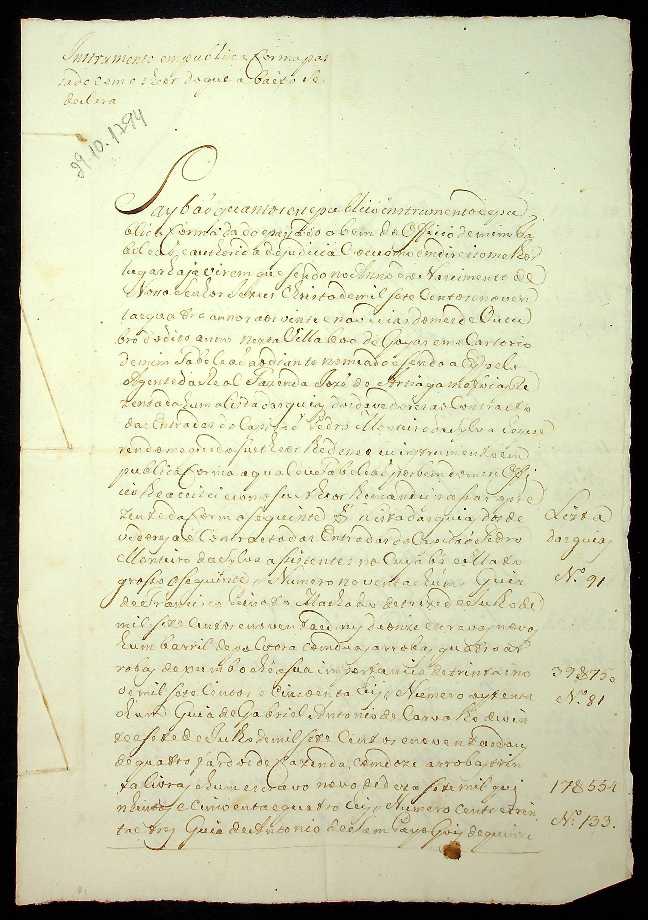 LISTA (traslado) das guias dos devedores ao Contrato das Entradas do Capitão Pedro Monteiro Silva.