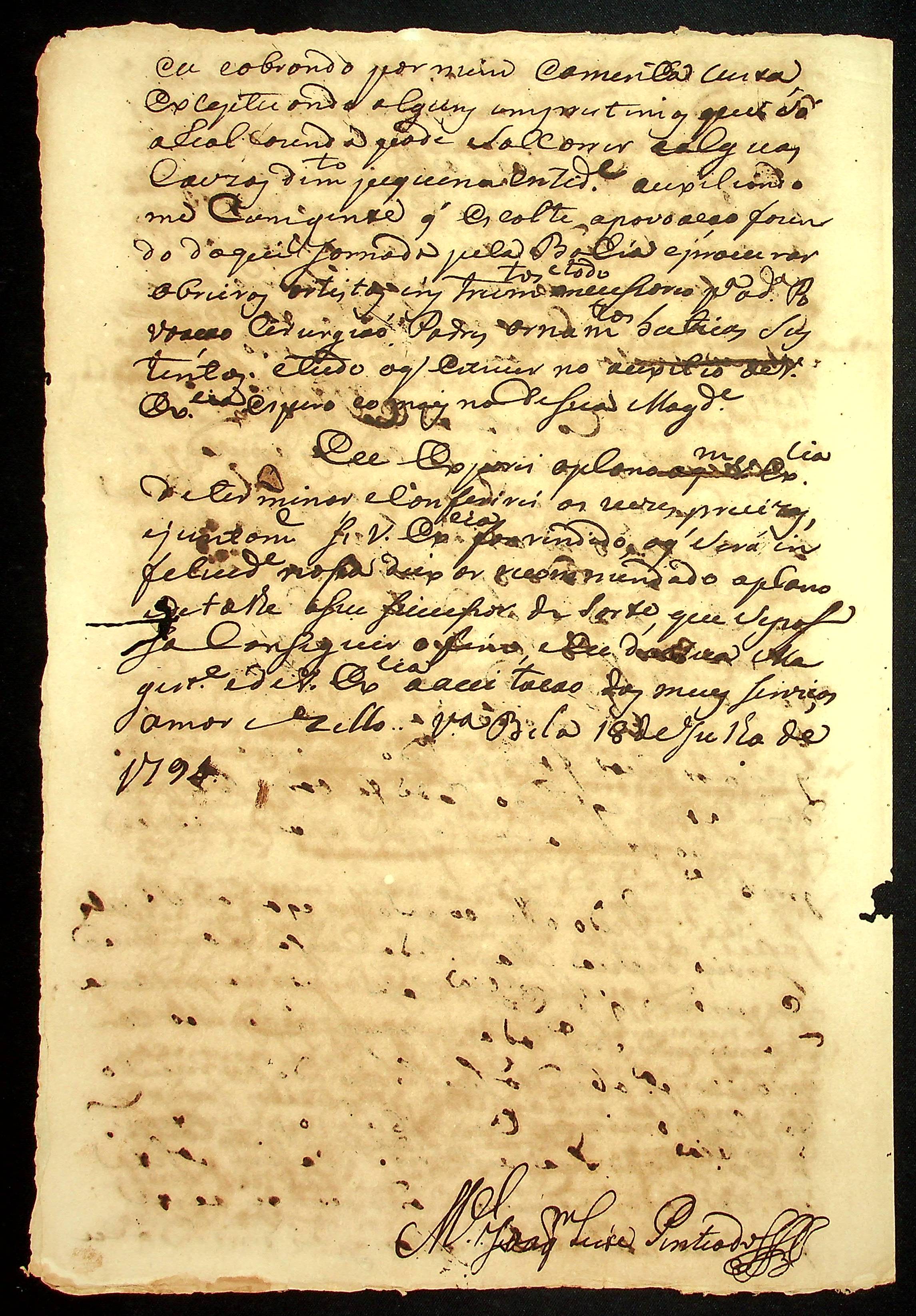 MEMÓRIA (Cópia) de Manoel Joaquim Leite Pintado ao Governador e Capitão-General da Capitania de Mato Grosso João de Albuquerque de Melo Pereira e Cáceres.