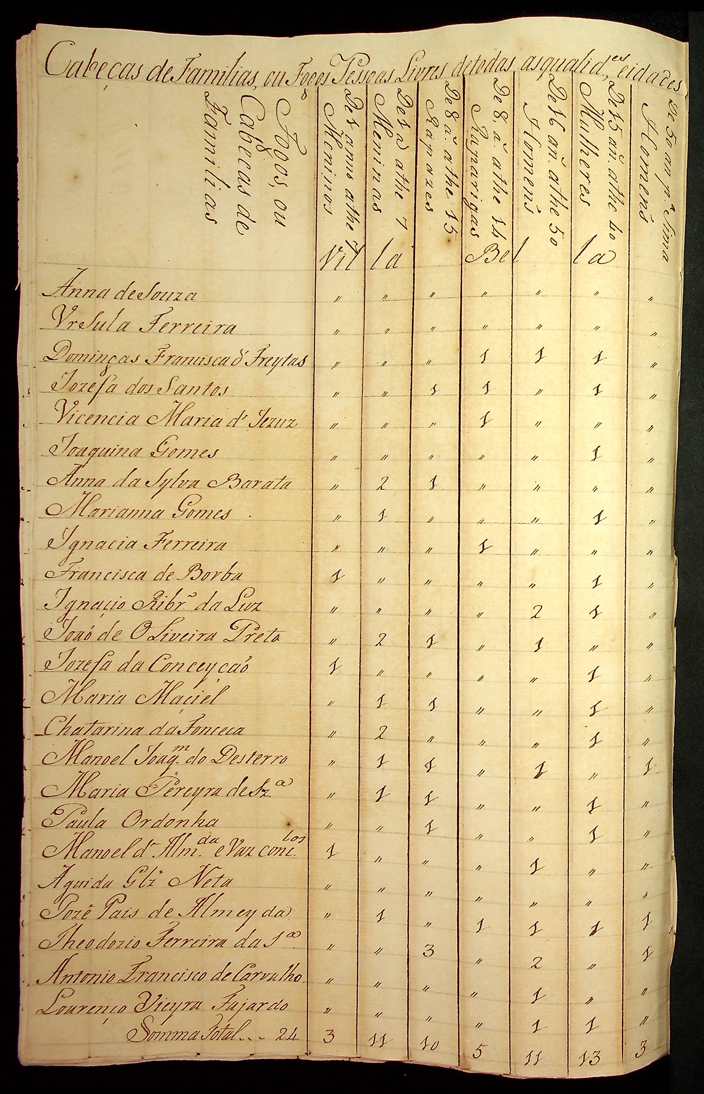 MAPA DE POPULAÇÃO de Vila Bela do ano de 1790
