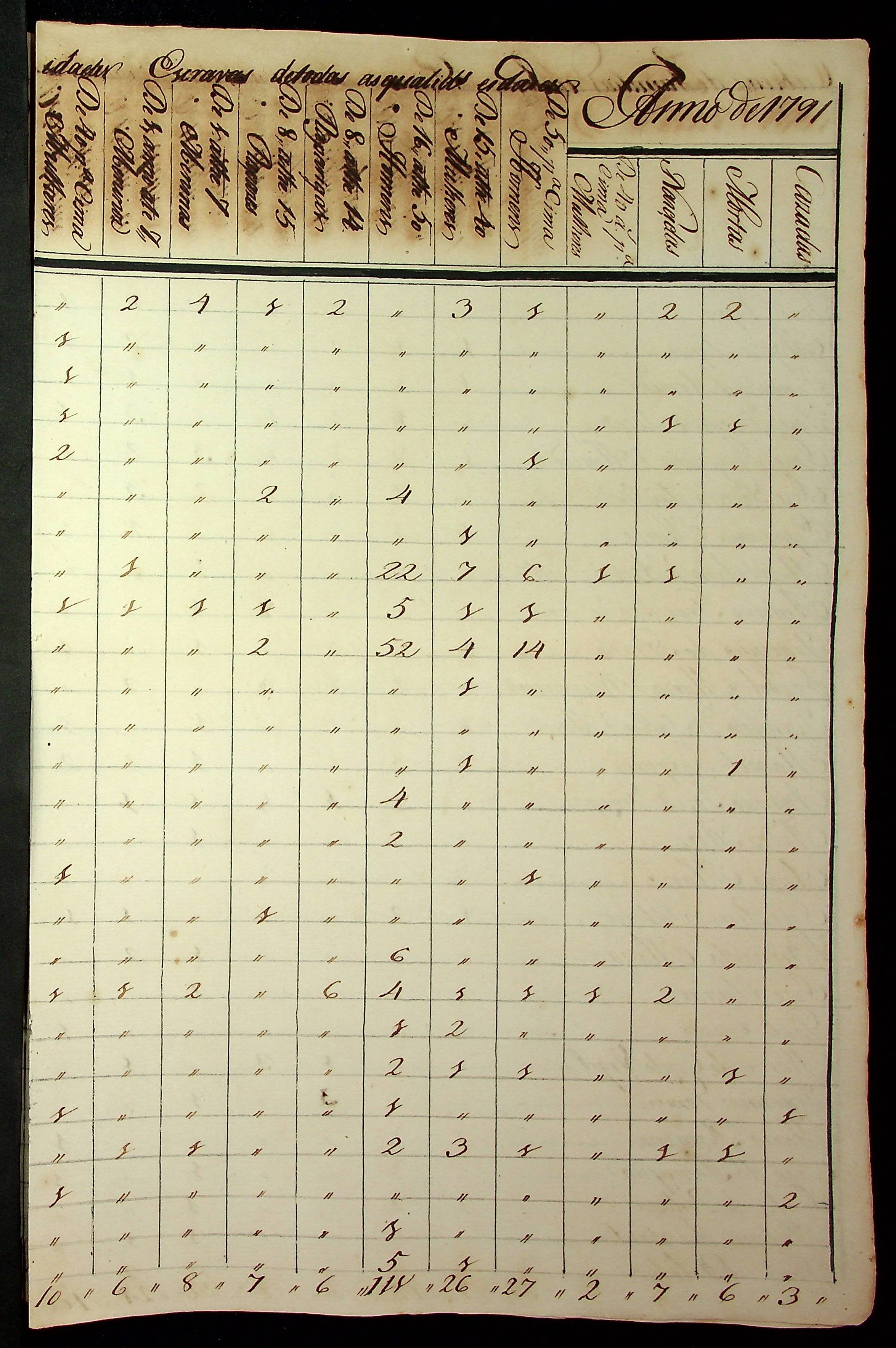 MAPA DE POPULAÇÃO de Vila Bela do ano de 1791.