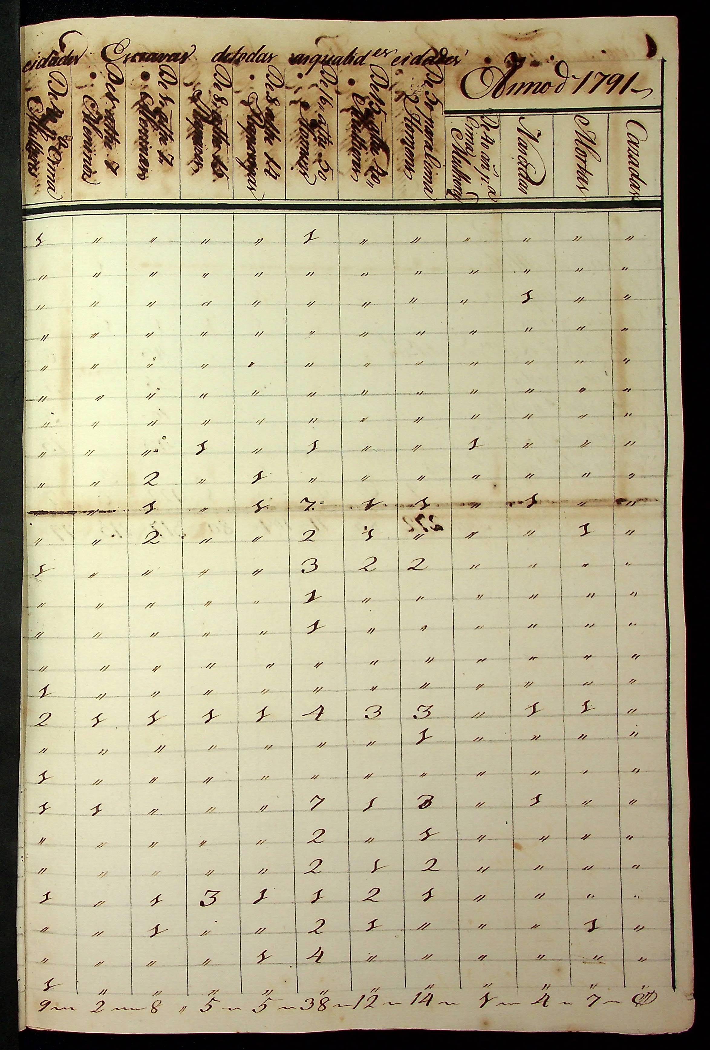 MAPA DE POPULAÇÃO de Vila Bela do ano de 1791.