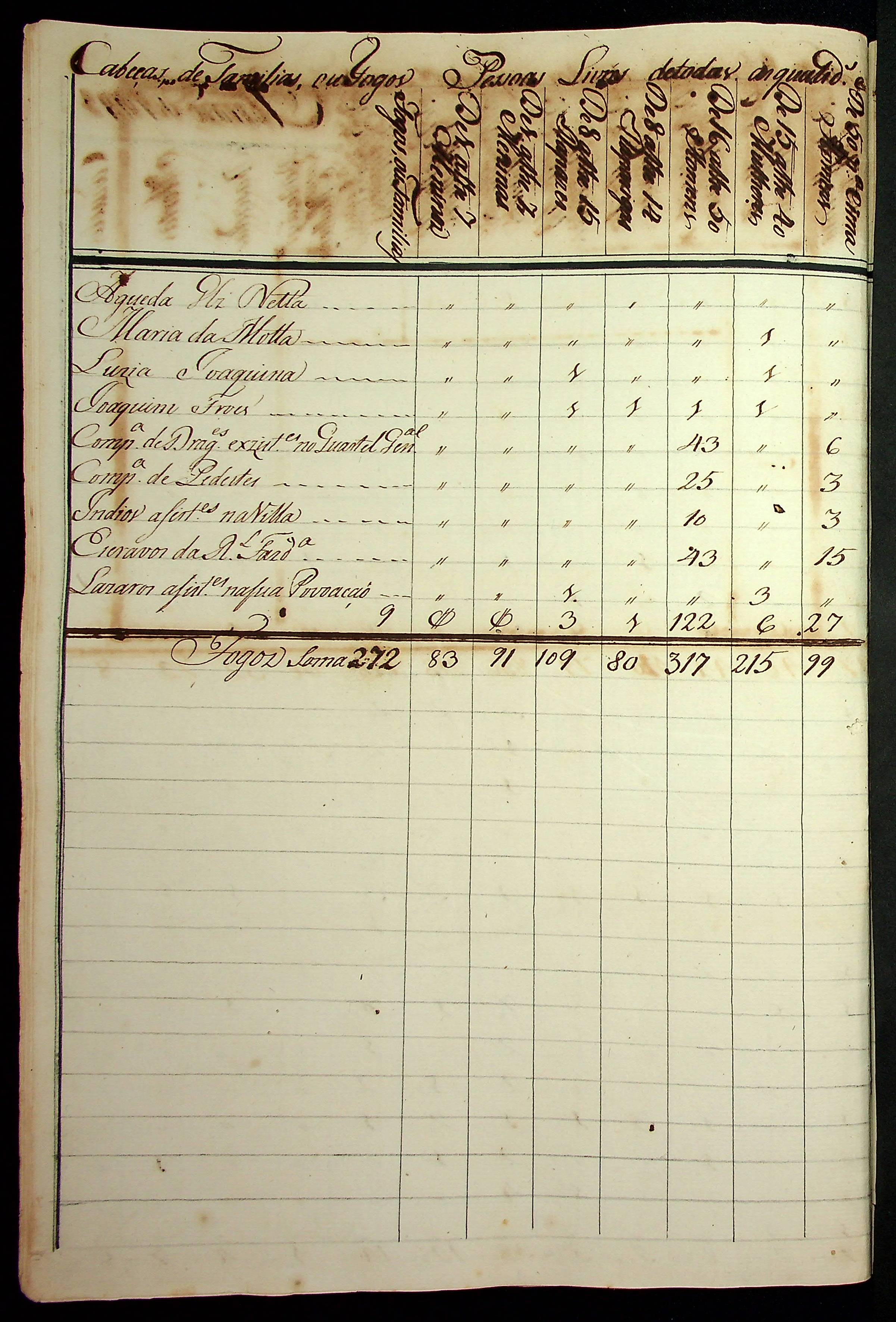 MAPA DE POPULAÇÃO de Vila Bela do ano de 1791.