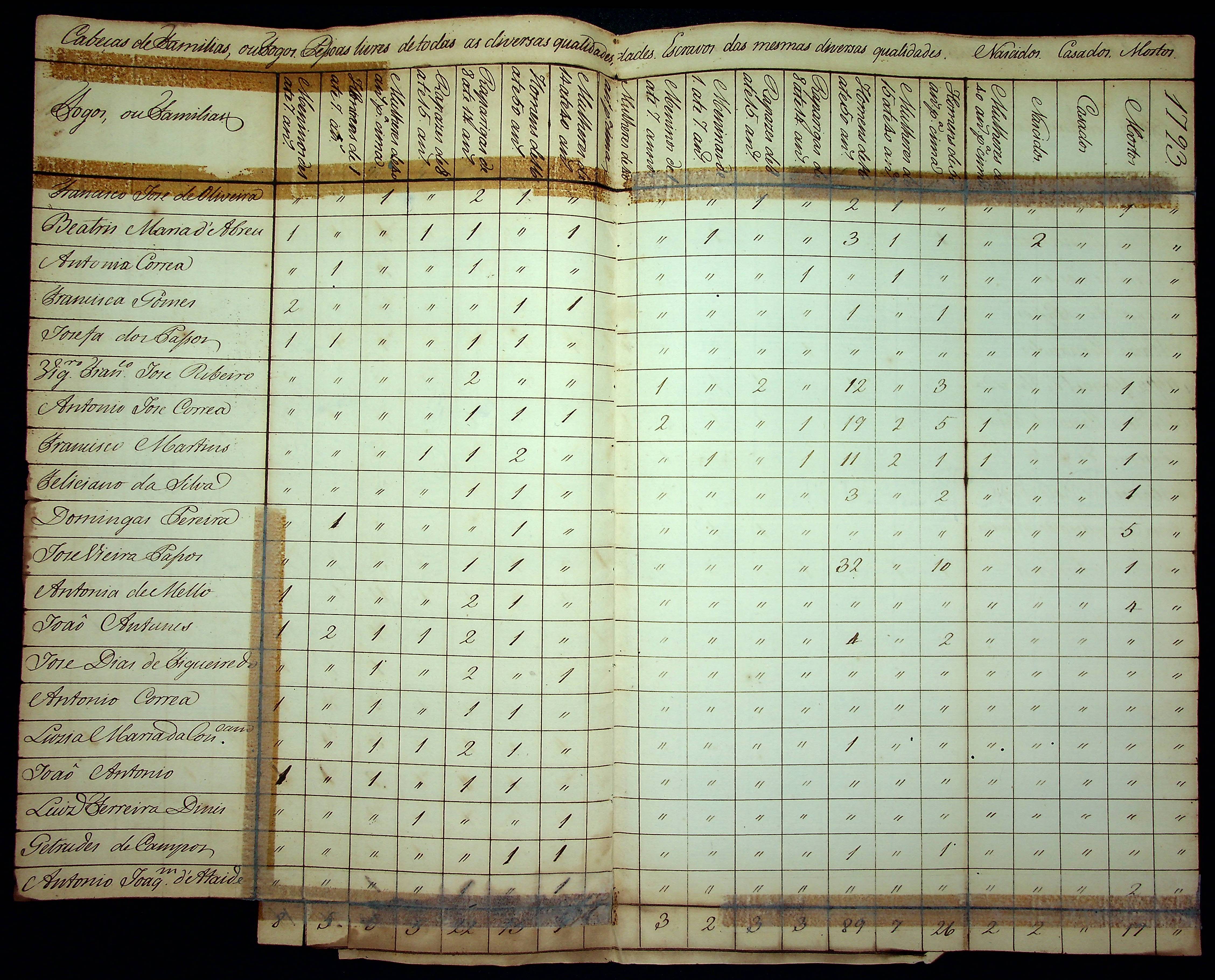 MAPA DE POPULAÇÃO de Vila Bela do ano de 1793.