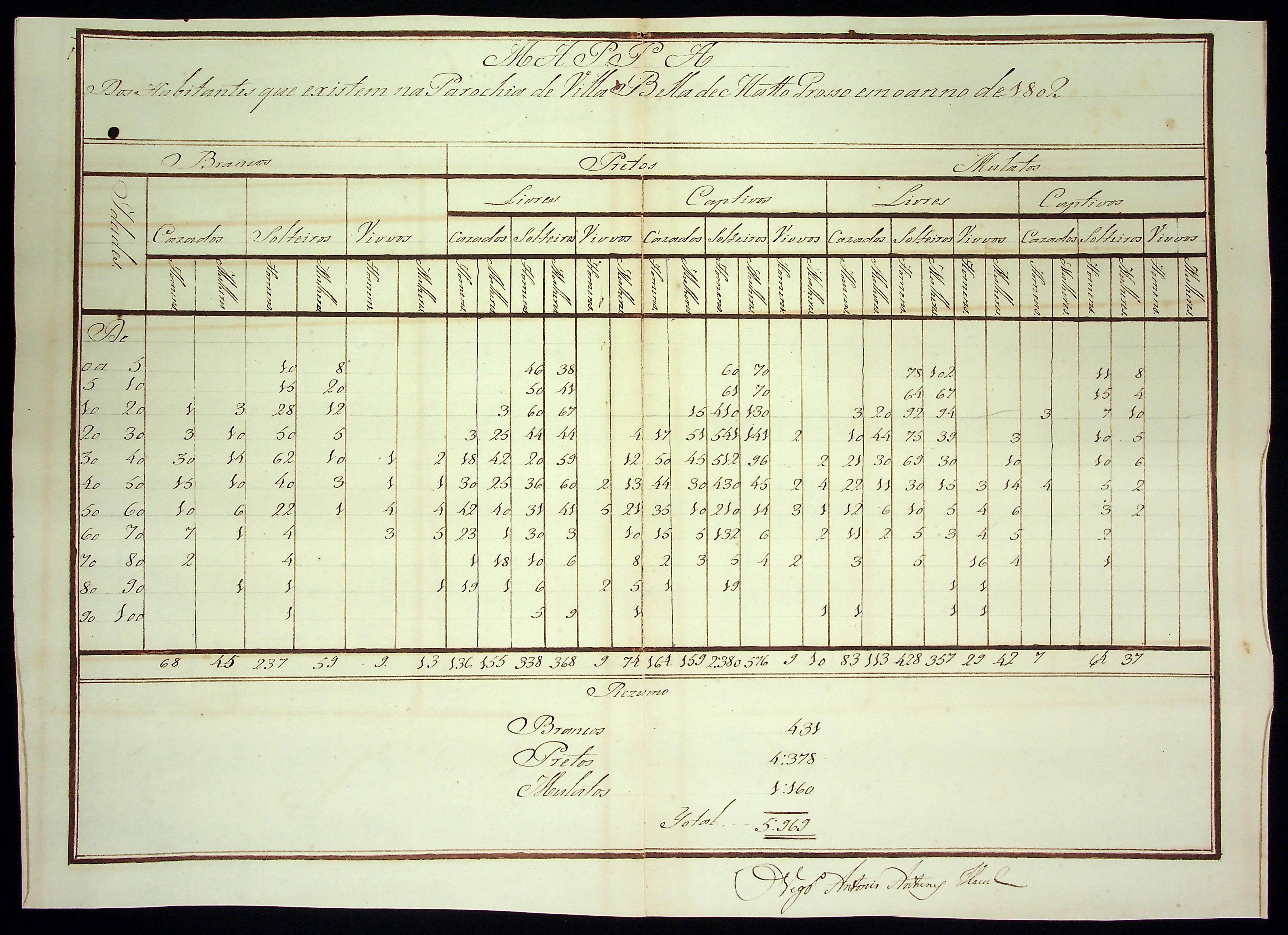 MAPA DOS HABITANTES que existem na Parochia de Vila Bela de Vila Bela de Mato Grosso.