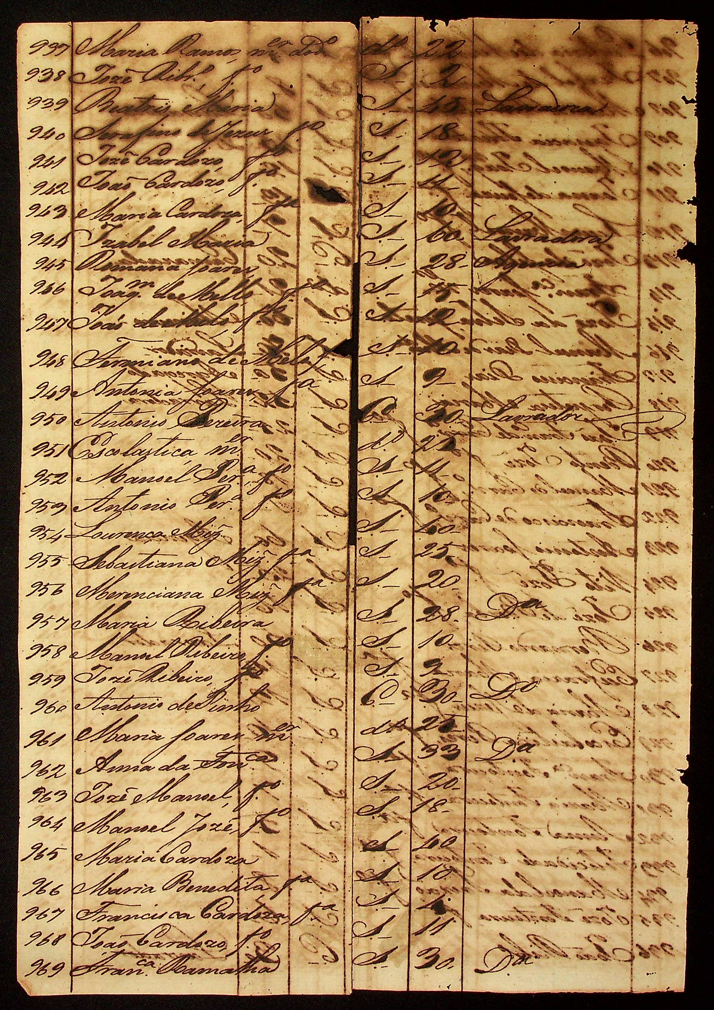 MAPA DE POPULAÇÃO do distrito de Serra Acima, tirada pelo Capitão da 3ª Companhia das Ordenanças Apolinário de Oliveira Gago.
